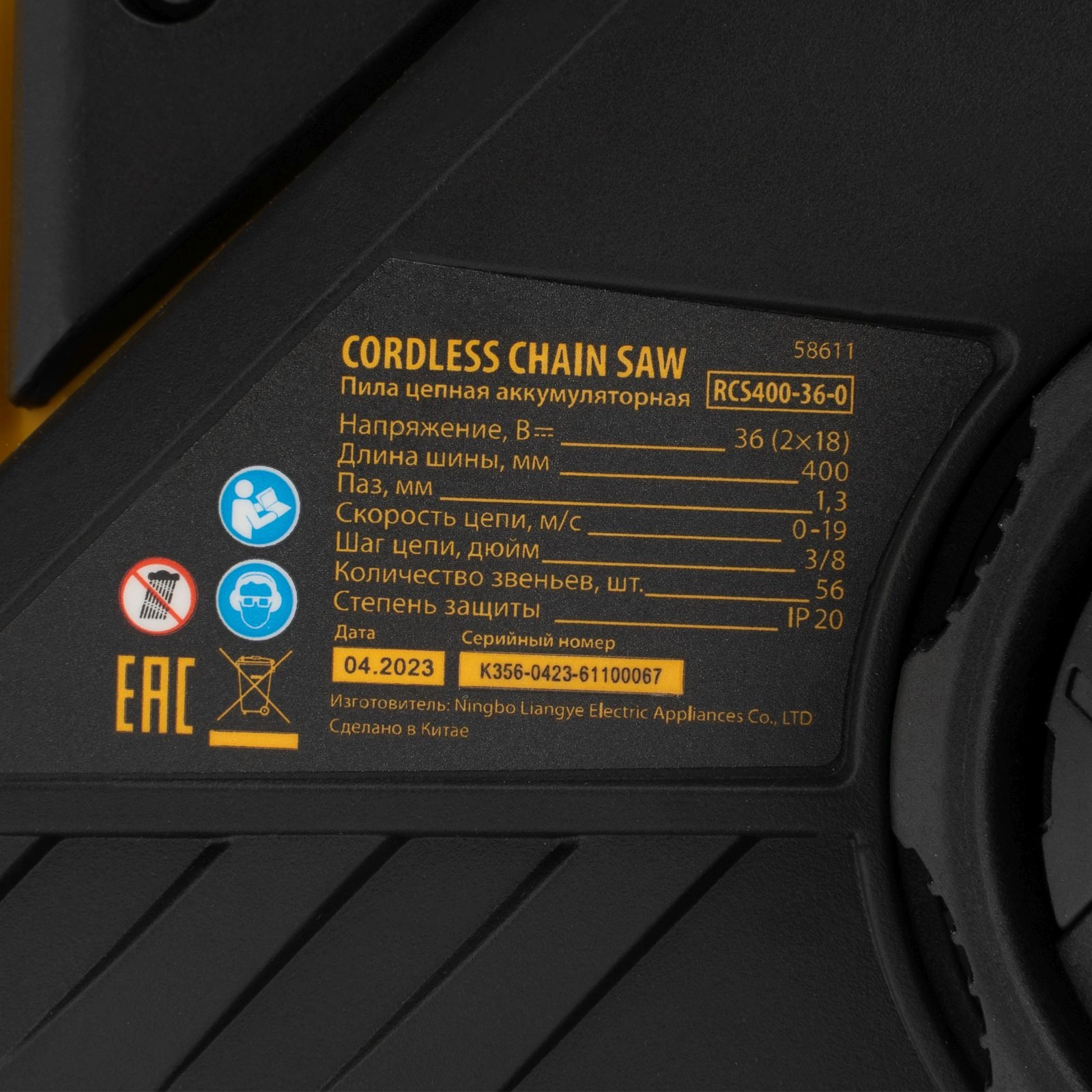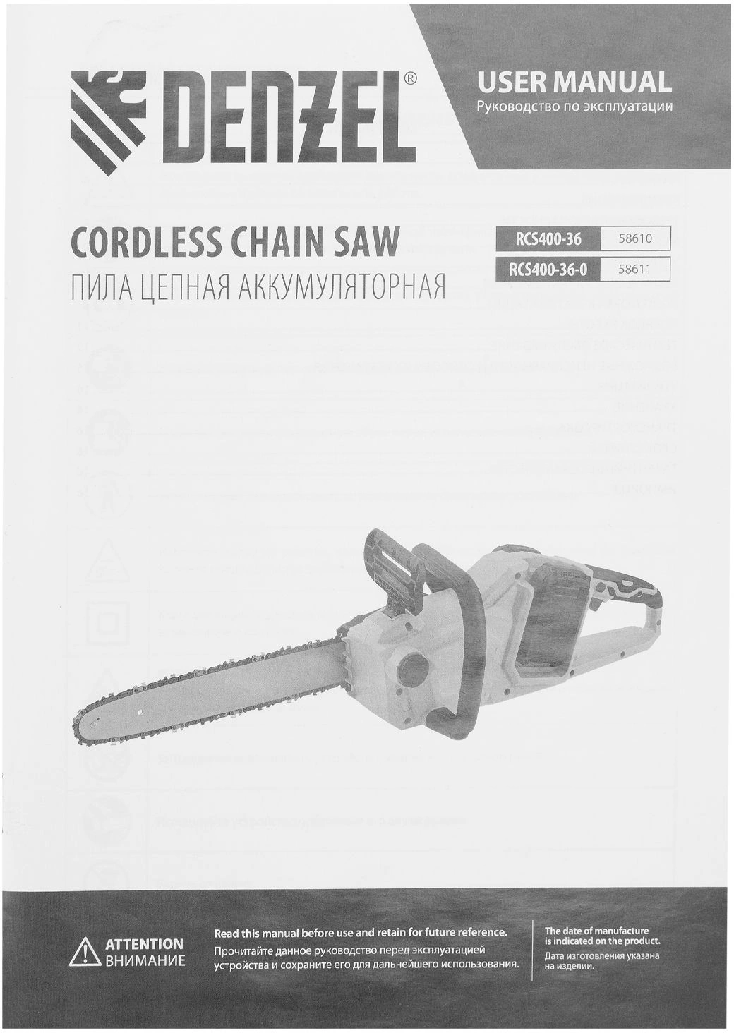 Цепная пила Denzel RCS400-36-0 аккум. дл.шины:16" (40cm) (58611)