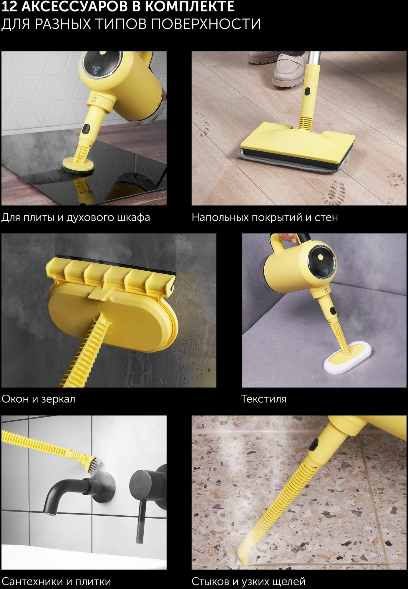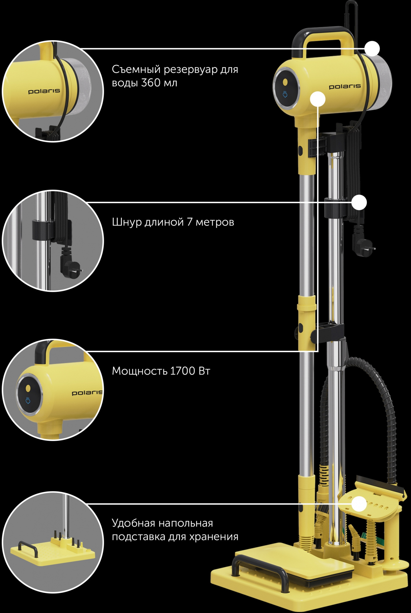 Пароочиститель напольный Polaris PSC 1711C 1700Вт желтый/черный