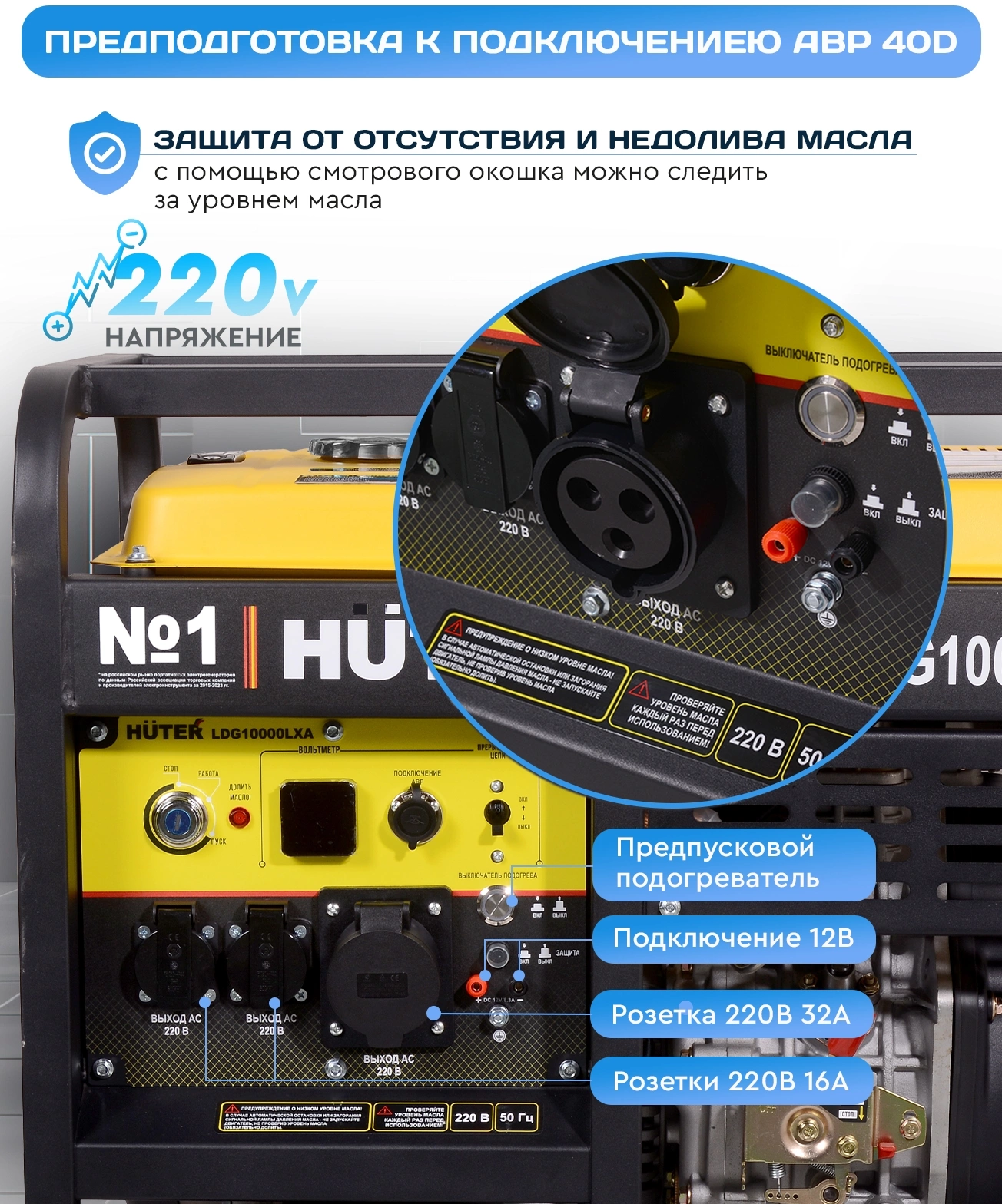 - ОсобенностиЩёточный генератор. Двигатель одноцилиндровый с воздушным охлаждением. Есть предподготовка для подключения АВР.