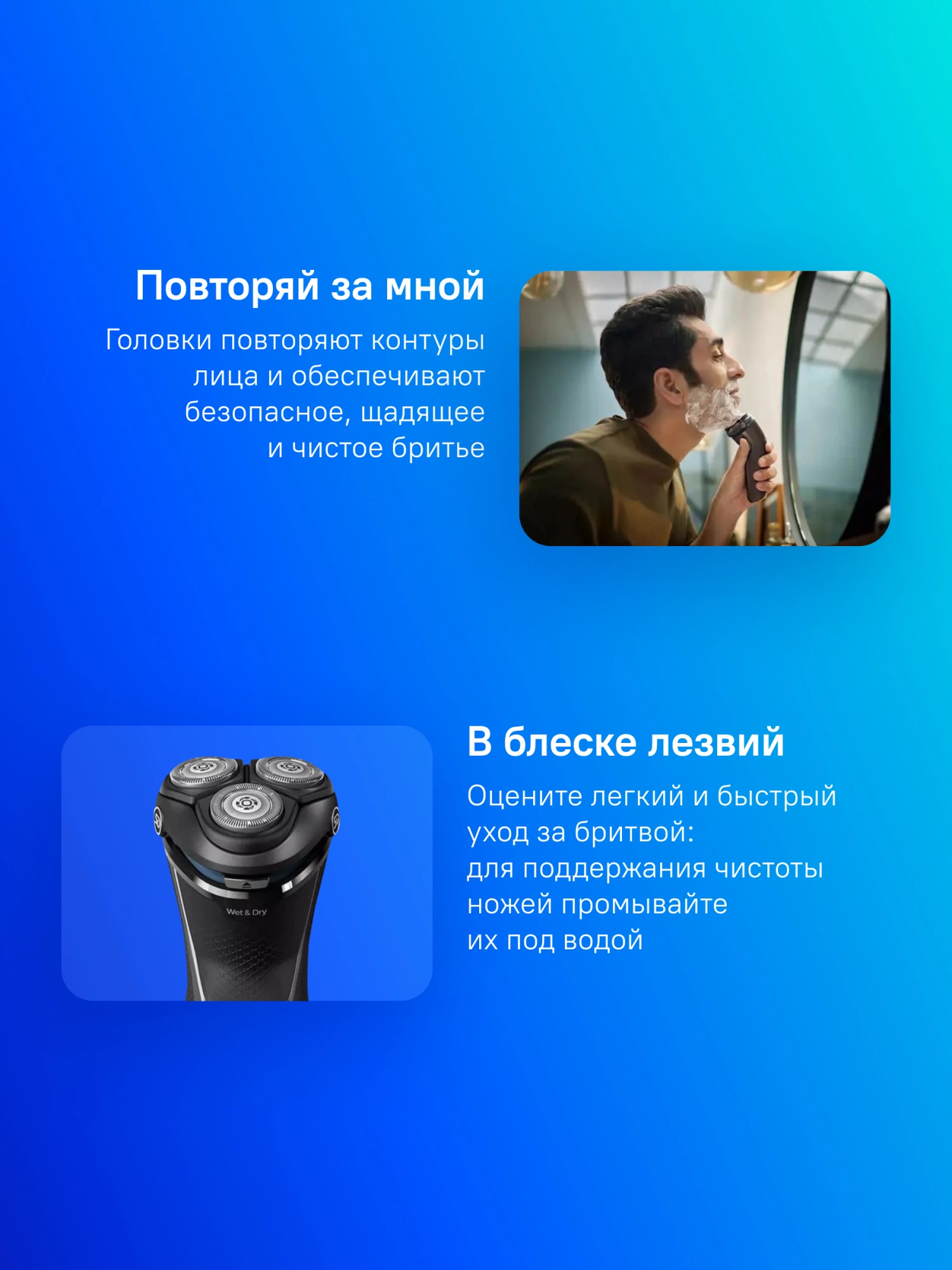 - Функциональные особенностибыстрый заряд, повторение контуров лица, промывка ножей под водой