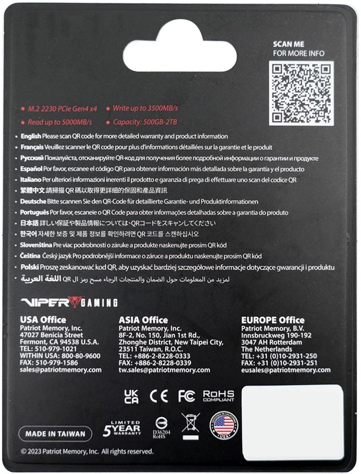 Накопитель SSD Patriot PCIe 4.0 x4 1TB VP4000M1TBM23 VP4000 Mini M.2 2230