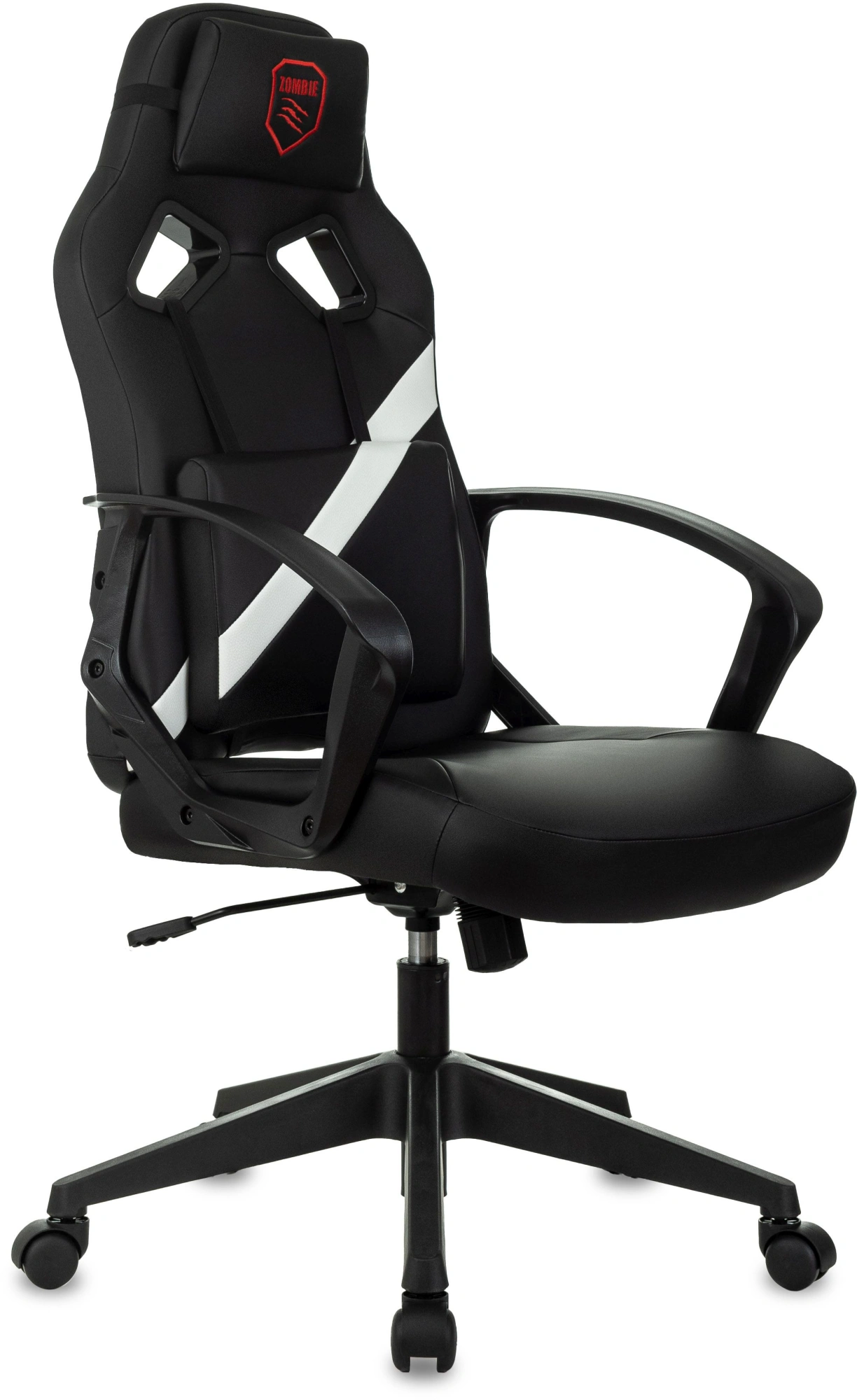 Кресло игровое Zombie 300 черный/белый экокожа с подголов. крестов. пластик пластик черный