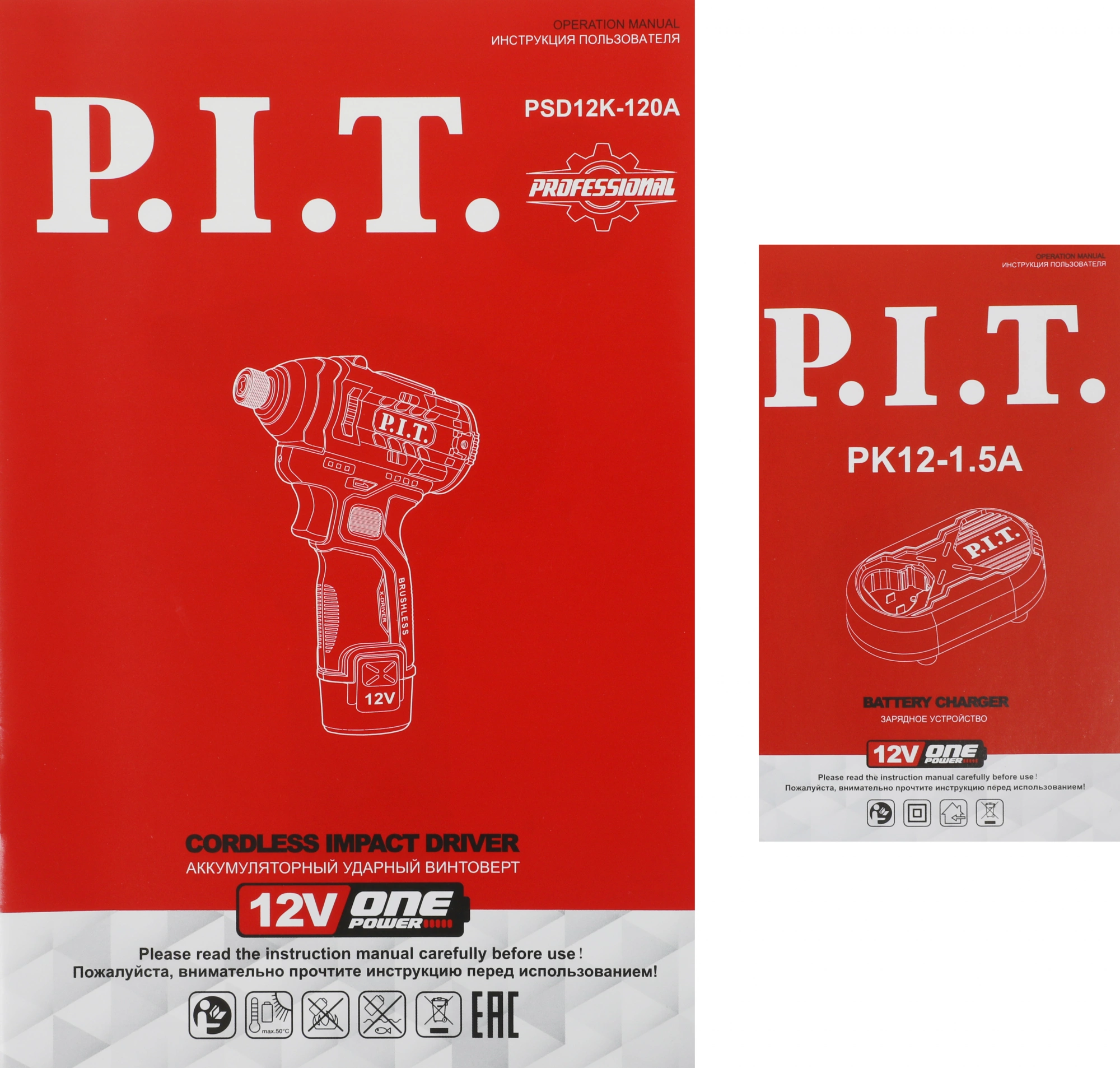 Винтоверт P.I.T. PSD12K-120A/2 аккум. патрон:держатель бит 1/4"