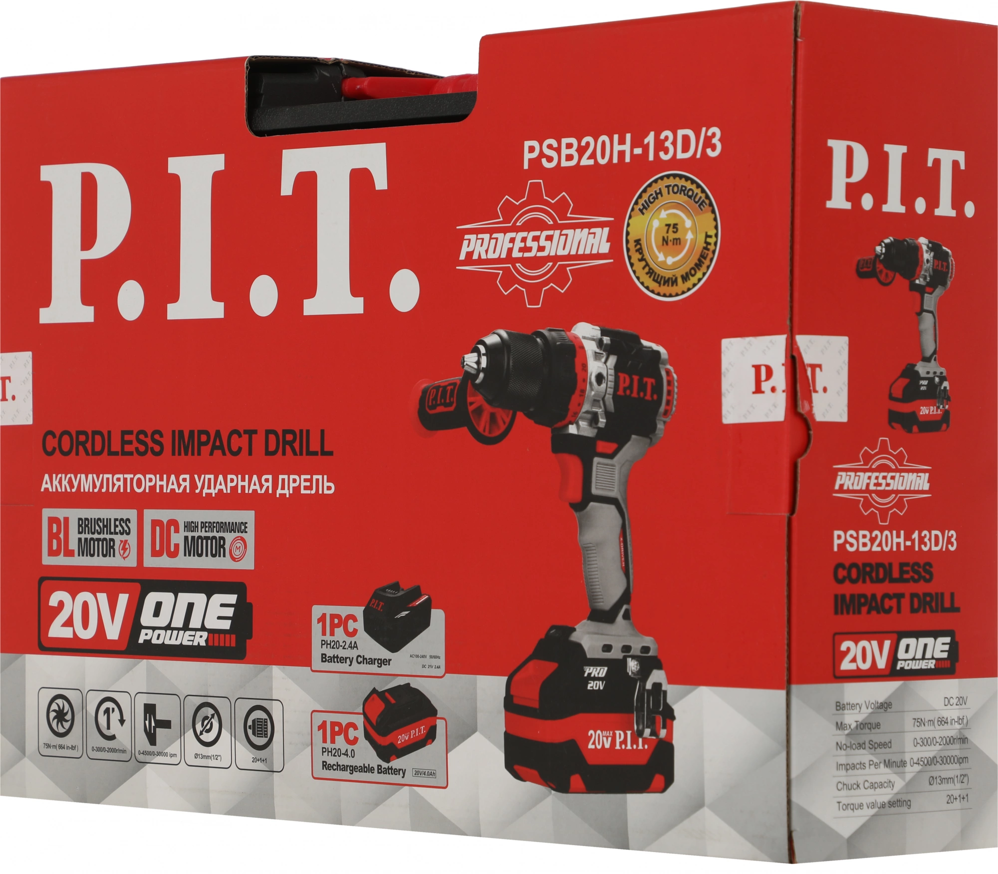 Дрель-шуруповерт P.I.T. PSB20H-13D/3 аккум. патрон:быстрозажимной (кейс в комплекте)