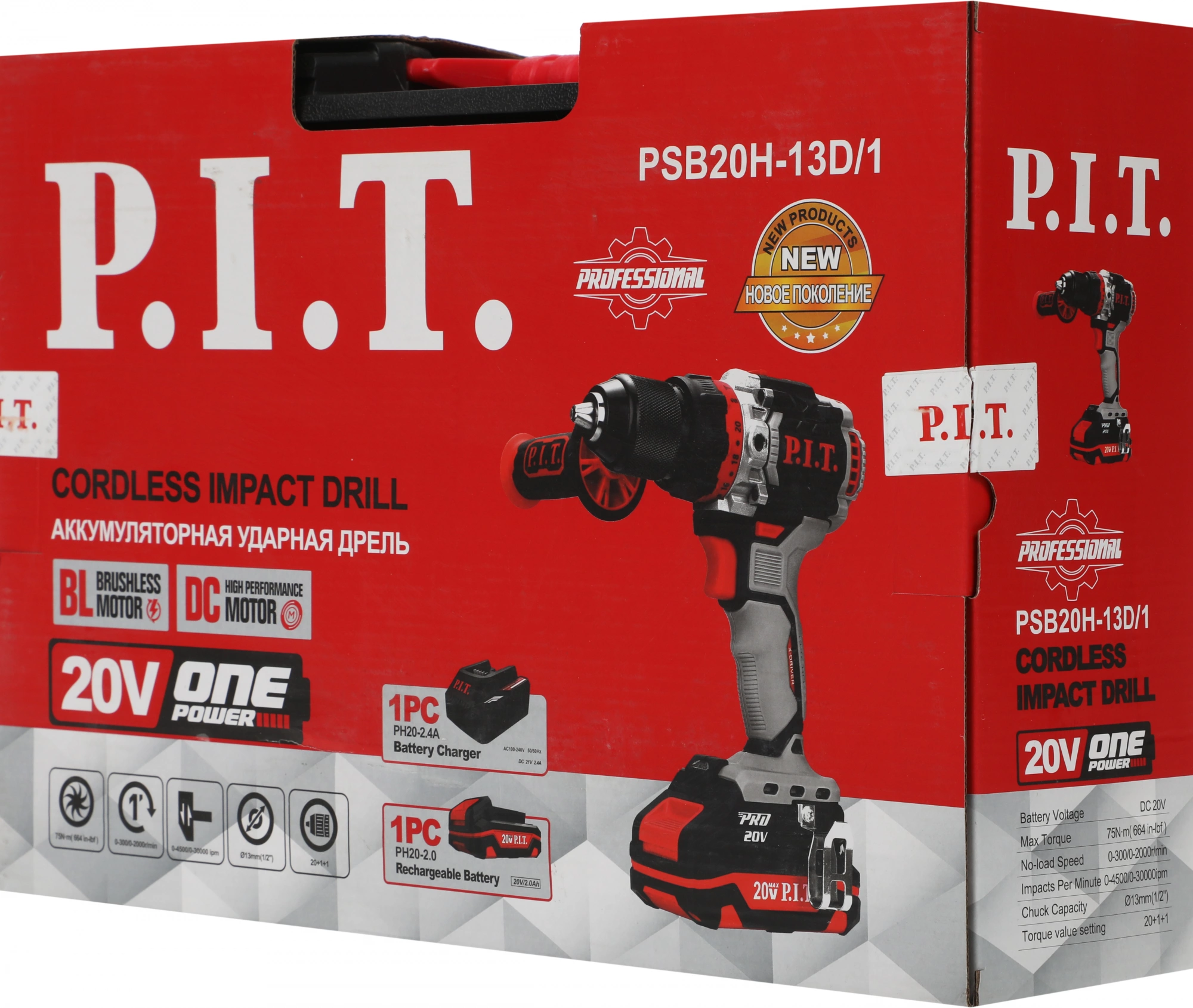 Дрель-шуруповерт P.I.T. PSB20H-13D/1 аккум. патрон:быстрозажимной (кейс в комплекте)