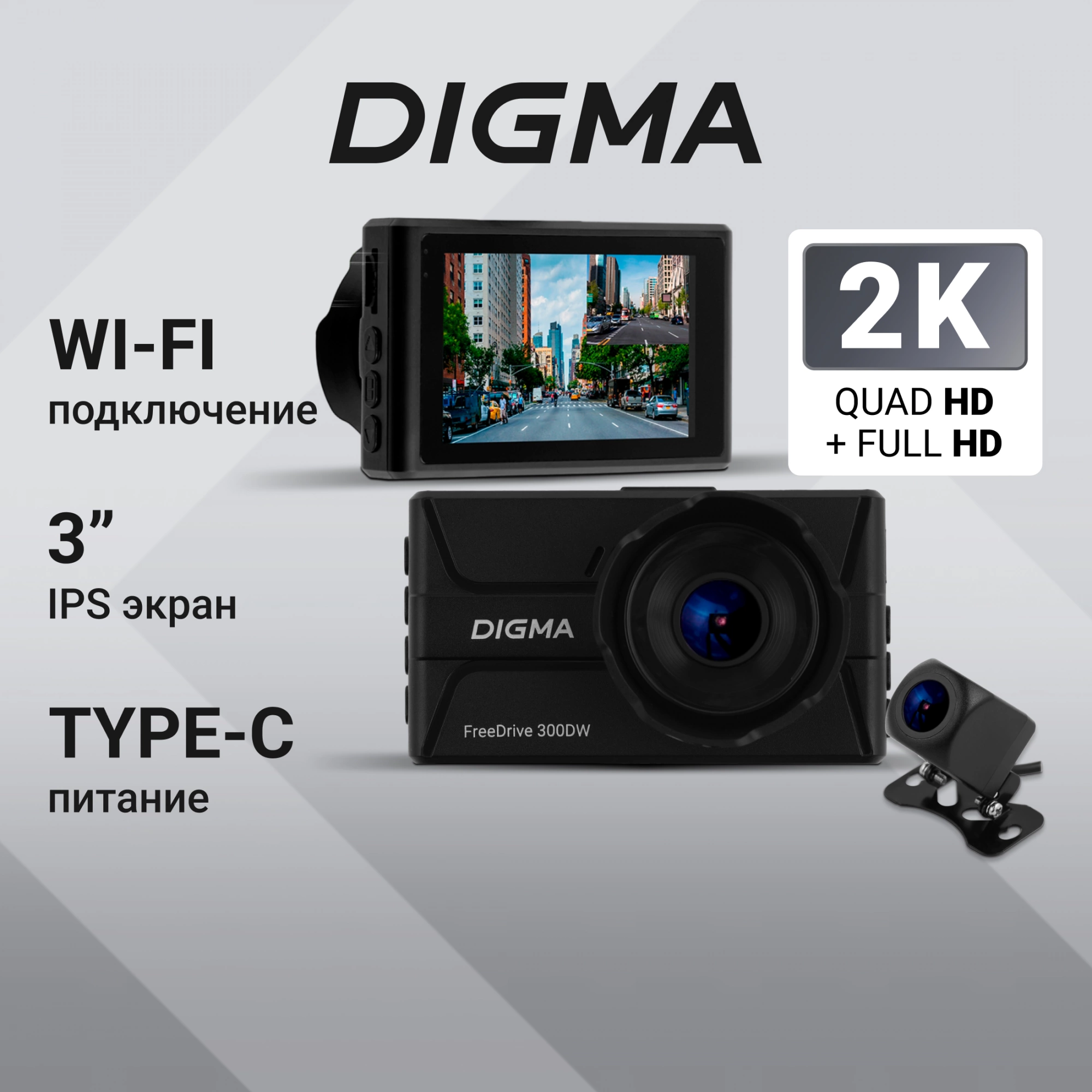 Видеорегистратор Digma FreeDrive 300DW черный 4Mpix 1440x2560 130гр.