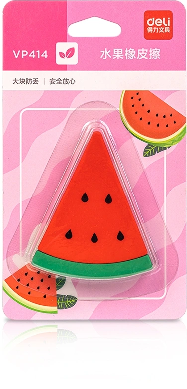 Ластик Deli в форме арбуза, ТПР, блистер с европодвесом