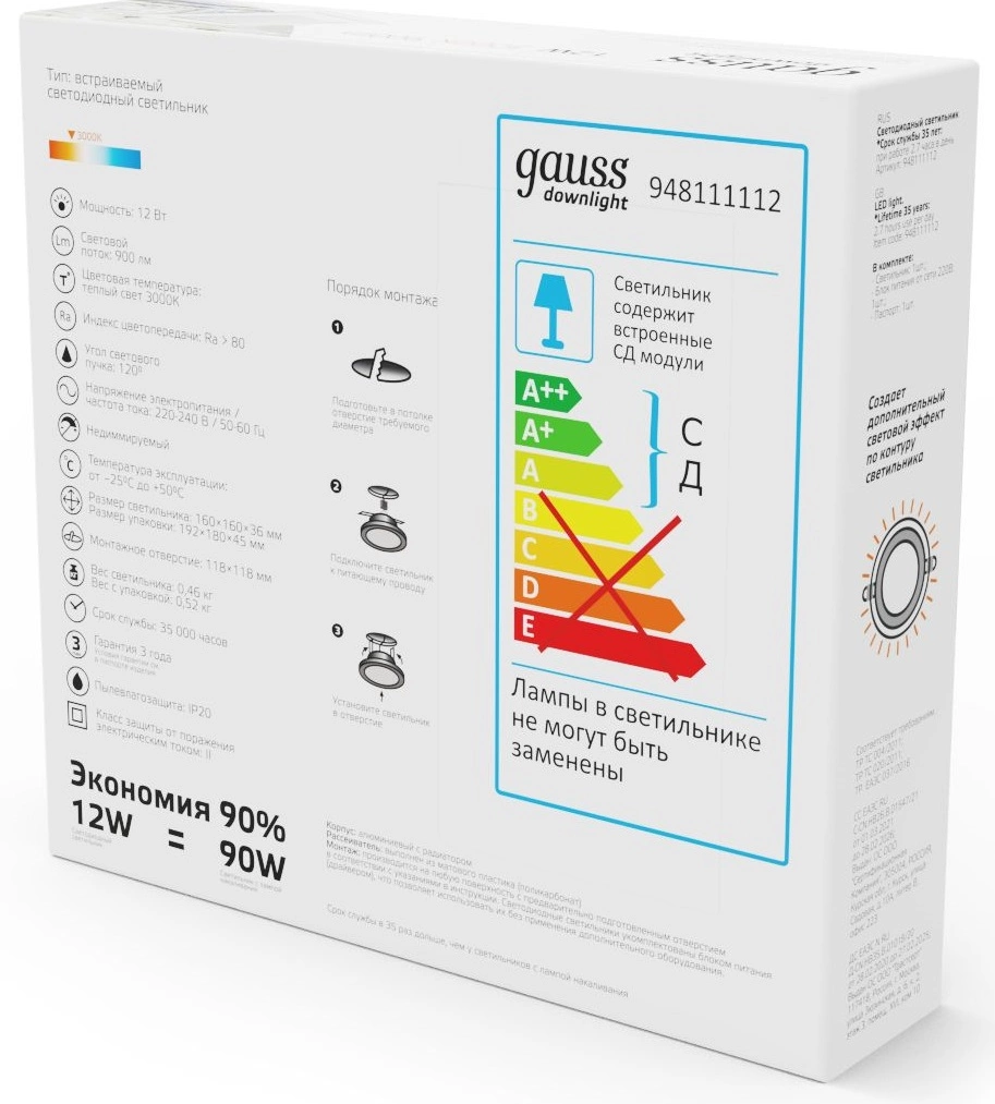 Светильник Gauss 948111112 3000K цв.св.:белый теплый белый