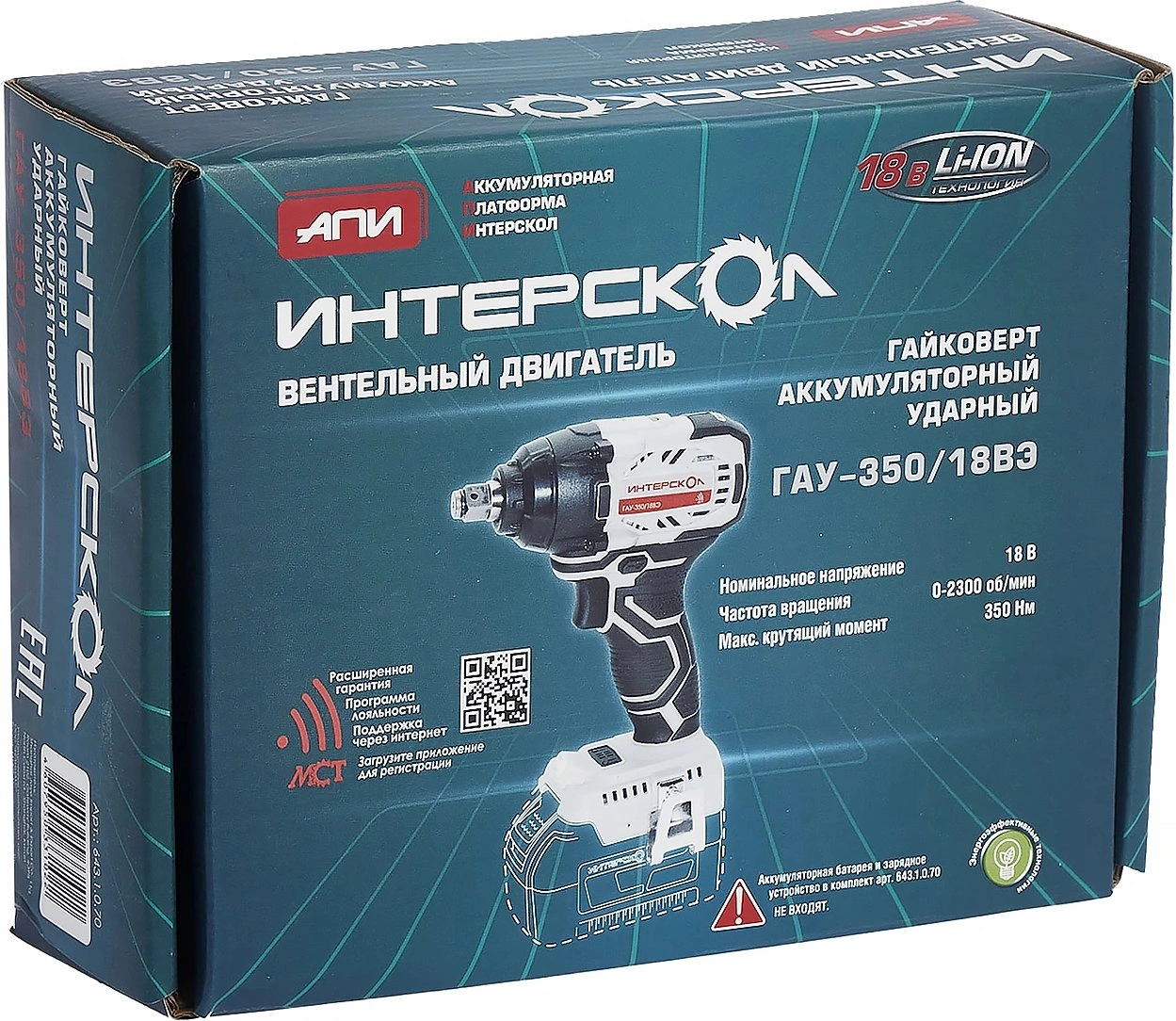 Гайковерт Интерскол ГАУ-350/18ВЭ без АКБ и ЗУ аккум. патрон:квад.1/2" (643.1.0.70)