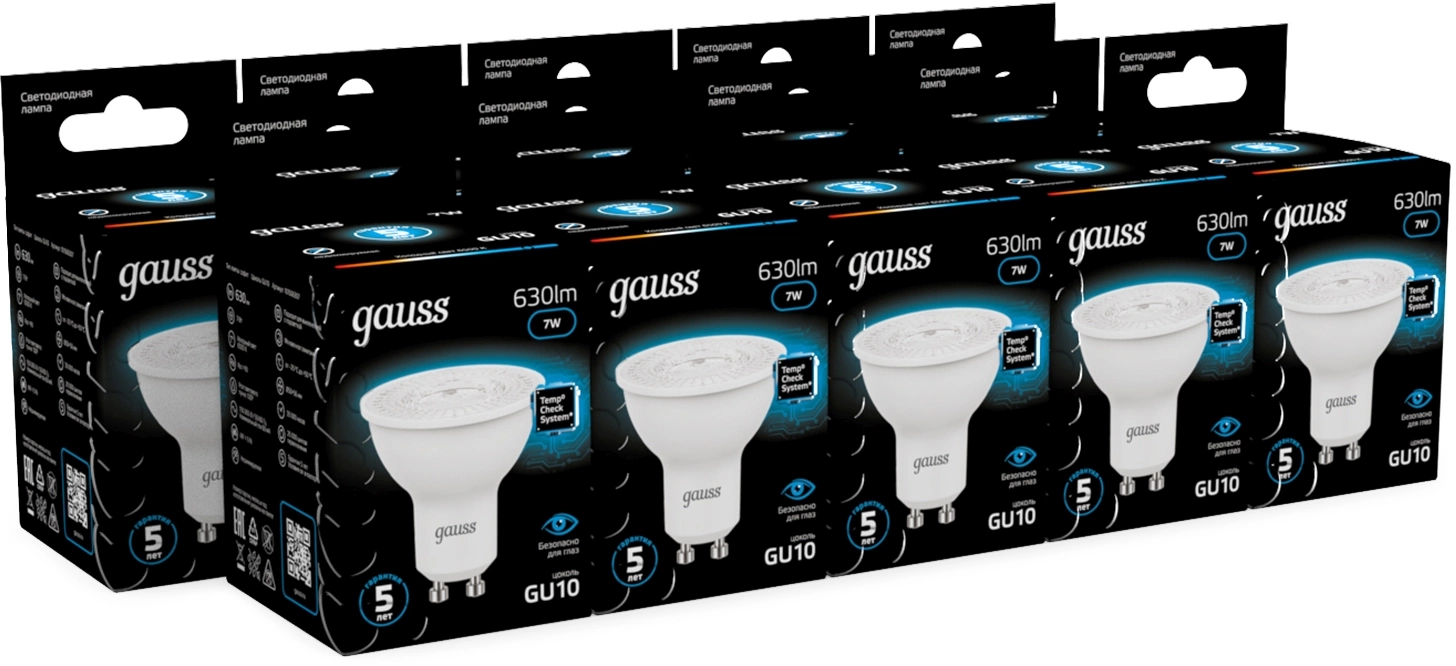 Лампа светодиодная Gauss 101506307 7Вт цок.:GU10 рефлек. 150B св.свеч.бел.хол. MR16 (упак.:10шт)