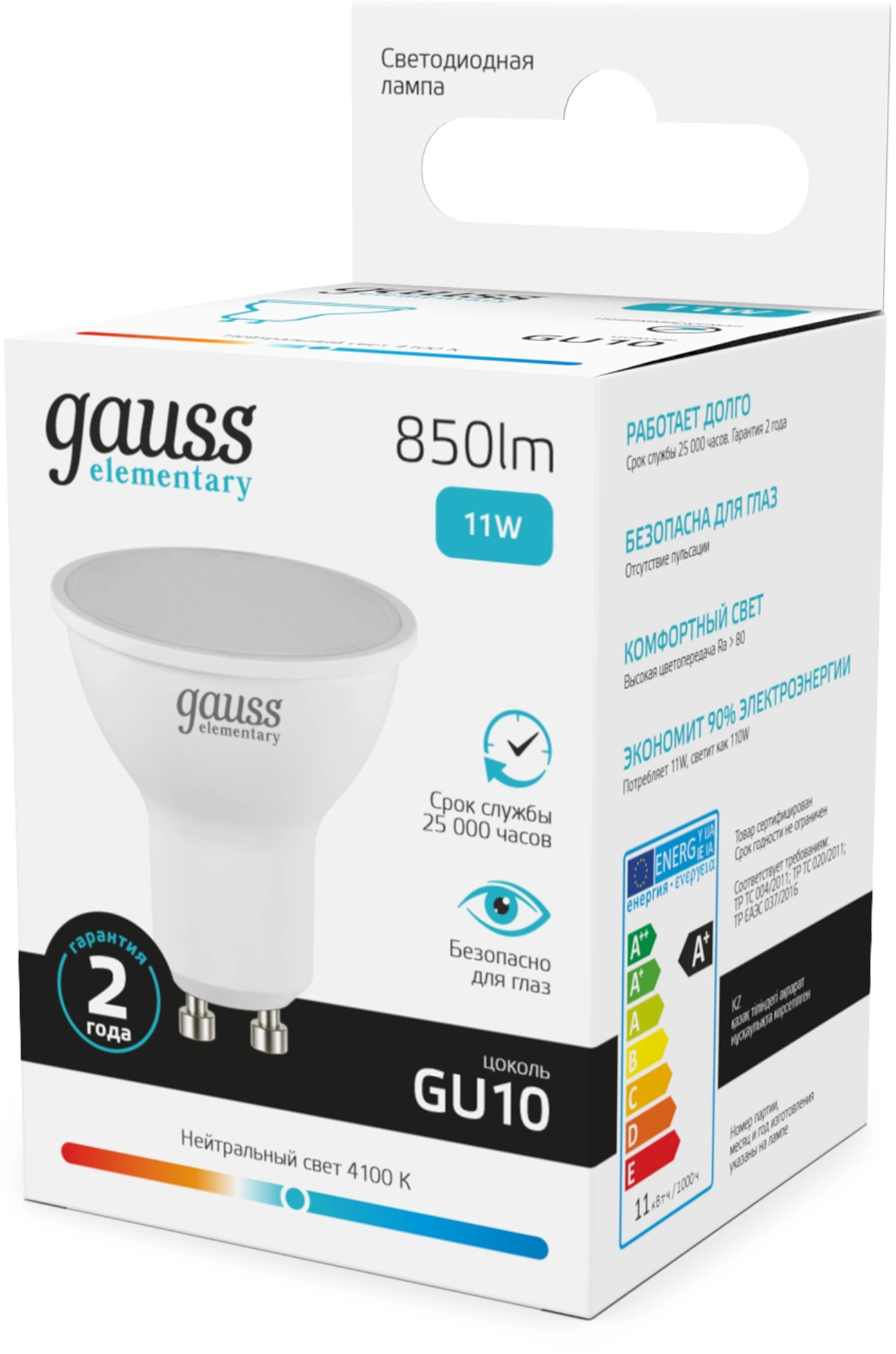Лампа светодиодная Gauss Elementary 13621 11Вт цок.:GU10 софит 180B св.свеч.бел.нейт. MR16 (упак.:10шт)