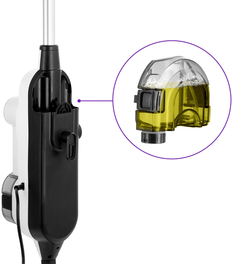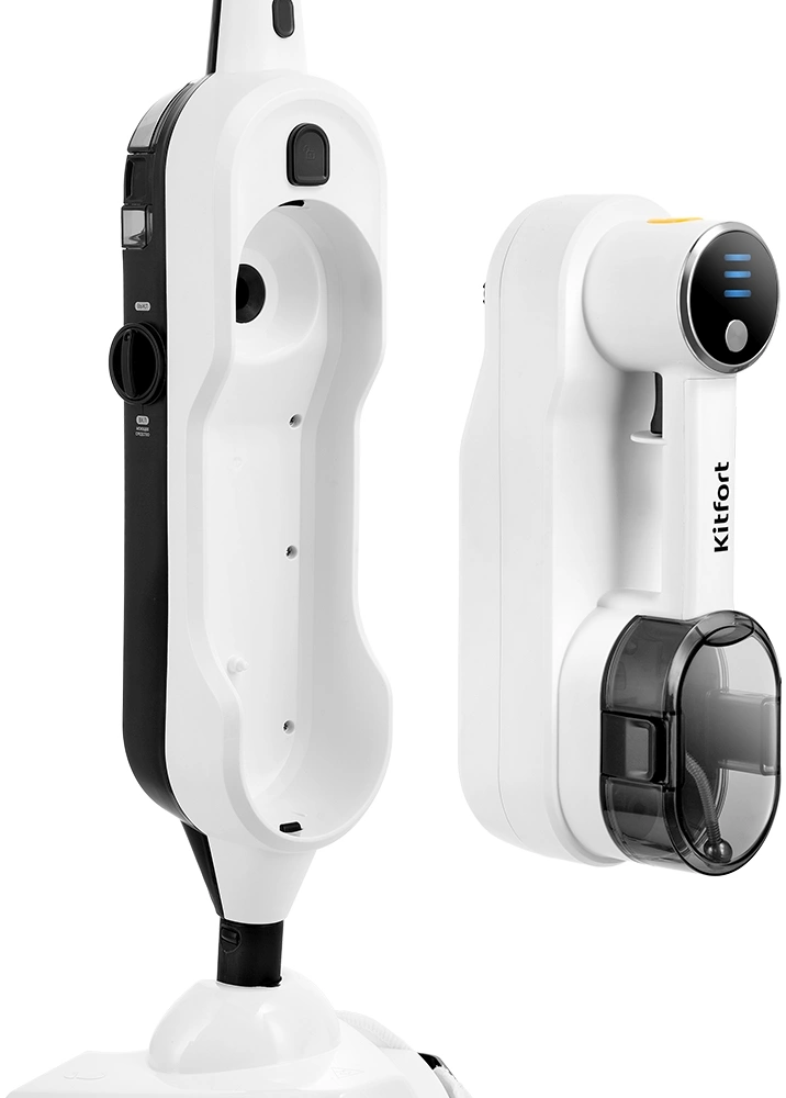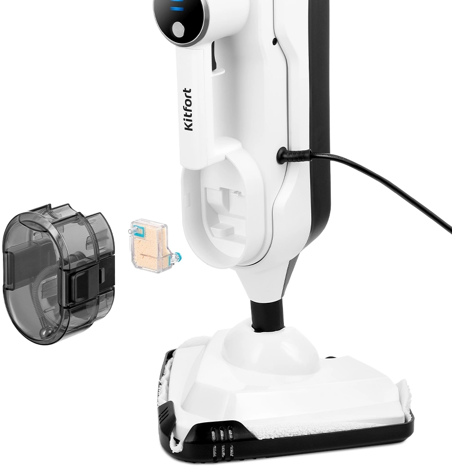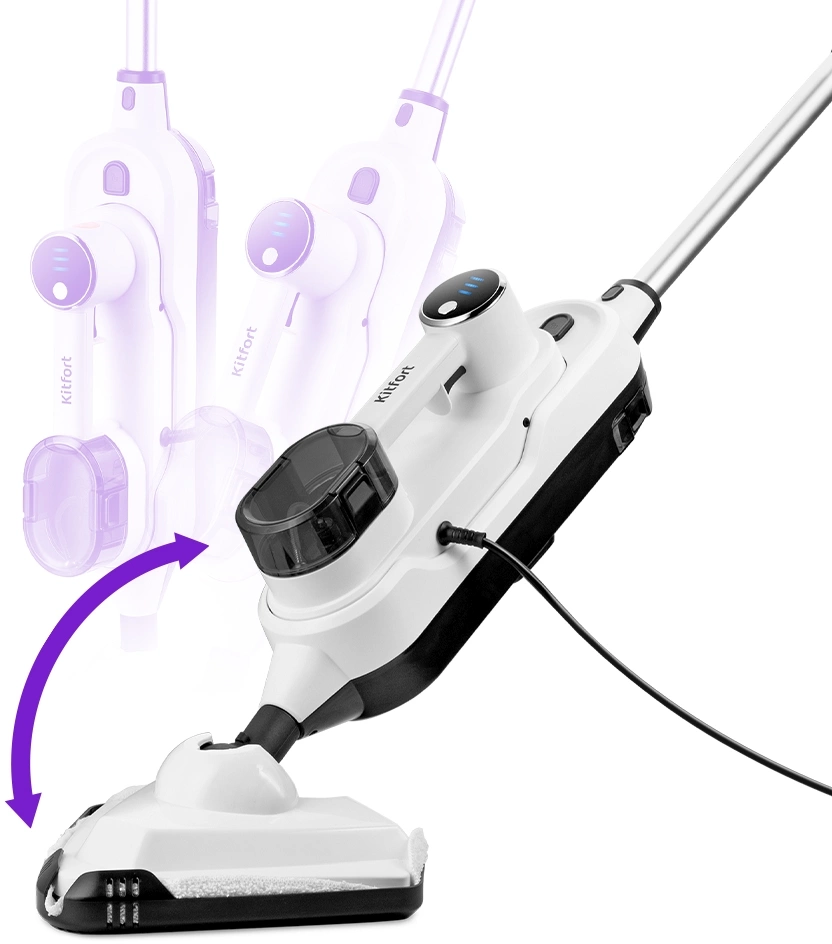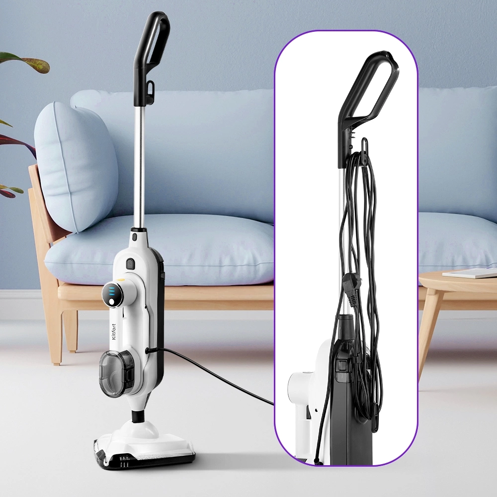 Стильная паровая швабра с функцией вертикальной парковки «2 в 1» КТ-1072 — универсальное и современное устройство, которое поможет избавиться от пыли и грязи с помощью мощной струи пара, а также продезинфицирует обрабатываемую поверхность.