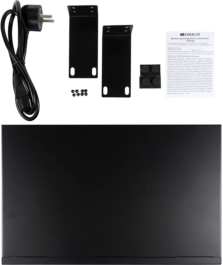 - Комплектациякоммутатор OS1326 - 1 шт, кабель питания - 1 шт, комплект для установки в 19-дюймовую стойку - 1 шт, документация