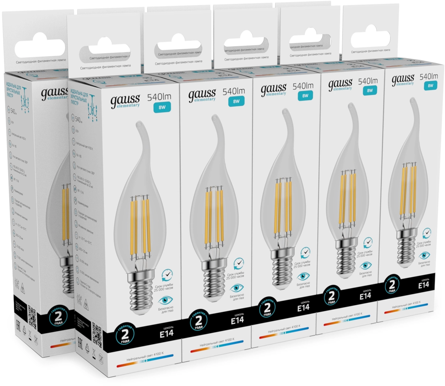Лампа филам. Gauss Filament 8Вт цок.:E14 свеча св.свеч.бел.нейт. (упак.:10шт) (42128)