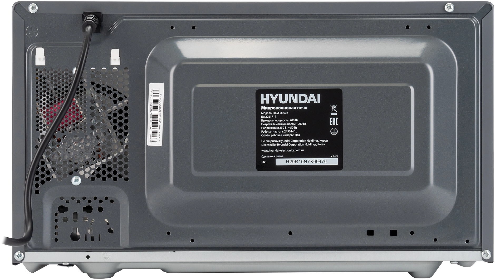 Микроволновая Печь Hyundai HYM-D3036 20л. 700Вт серый/серебристый