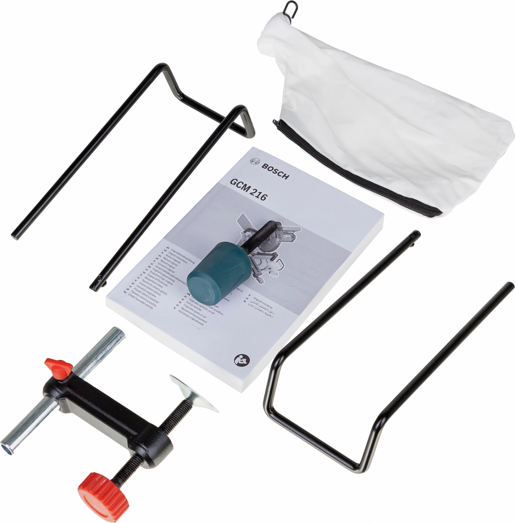 - Комплект поставкибоковые упоры, ключ для зажима оснастки, пильный диск, пылесборник, струбцина