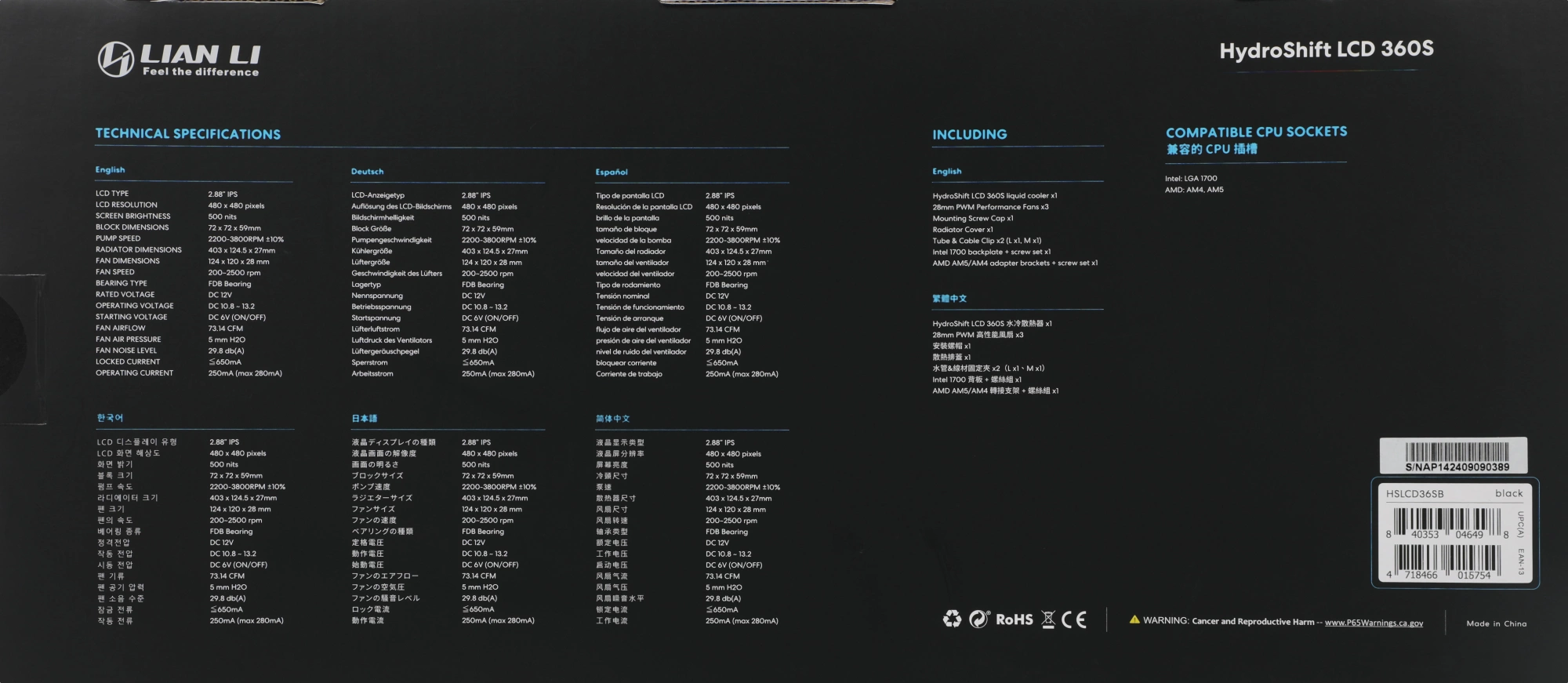 Система водяного охлаждения Lian-Li HydroShift LCD 360S Soc-AM5/AM4/1700/1851 черный 4-pin 29.8dB Al+Cu LCD 330W Ret (G89.GHSLCD36SB.R0)