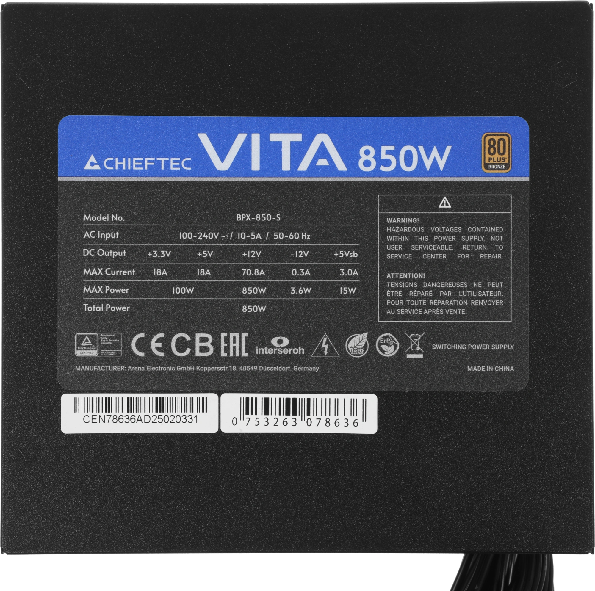 Блок питания Chieftec ATX 850W Vita BPX-850-S 80+ bronze (20+4pin) APFC 120mm fan 6xSATA RTL