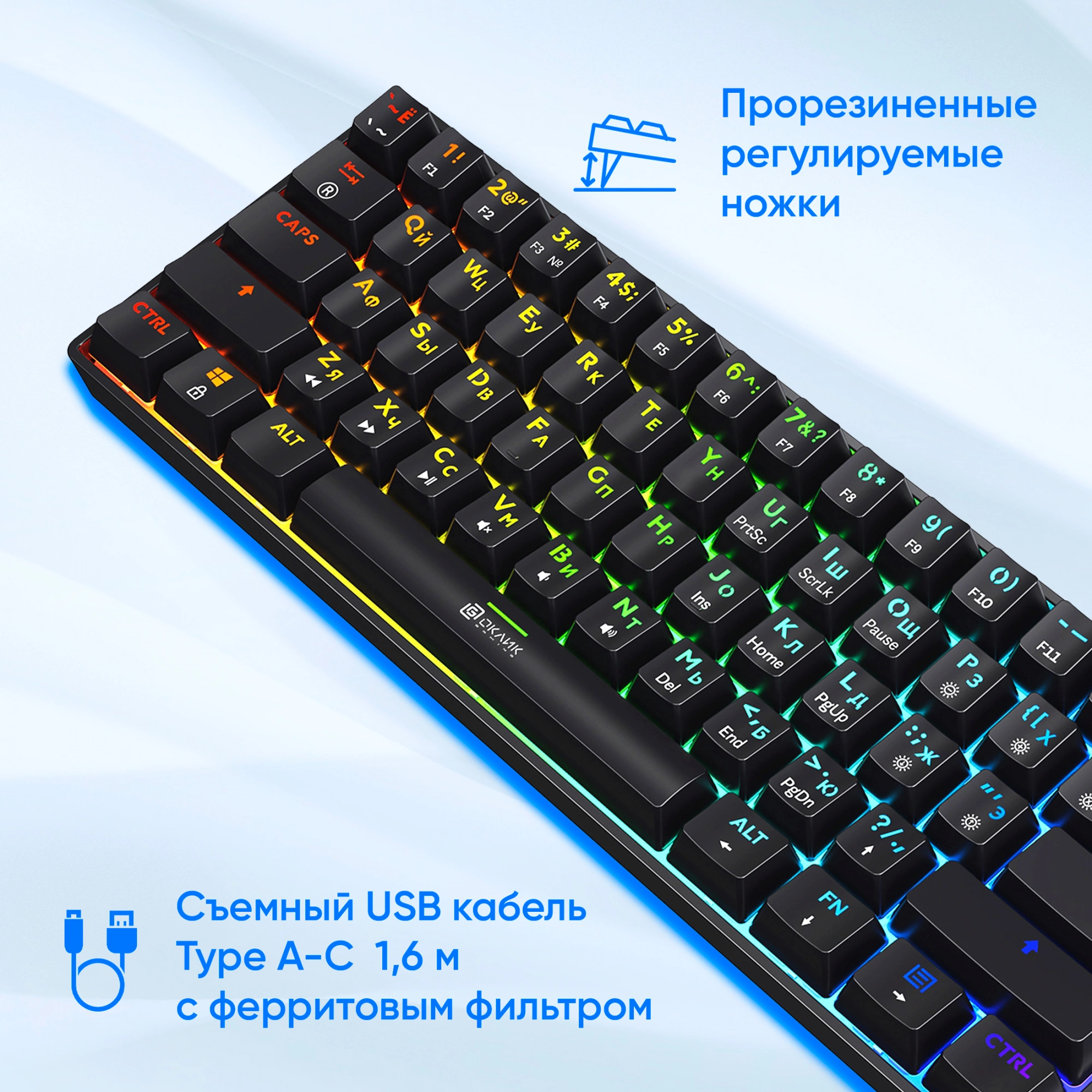- ОсобенностиКомпактная механическая клавиатура с реализованной технологией Hot-Swap. Яркая RGB-подсветка с возможностью настройки. Свитчи красные линейные (Huano)