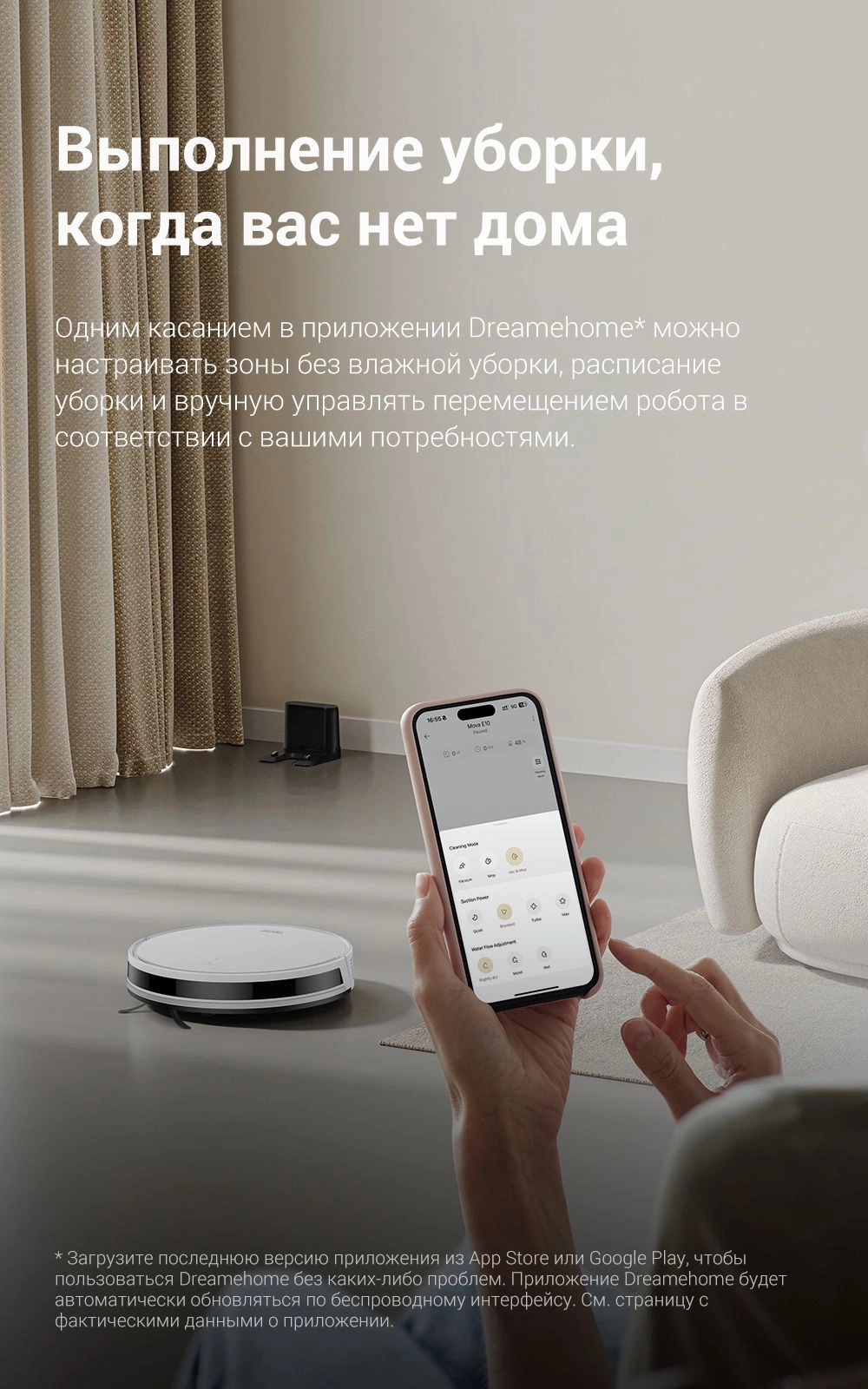 - Функции робота-пылесосаавтоматический поиск зарядного устройства, управление со смартфона