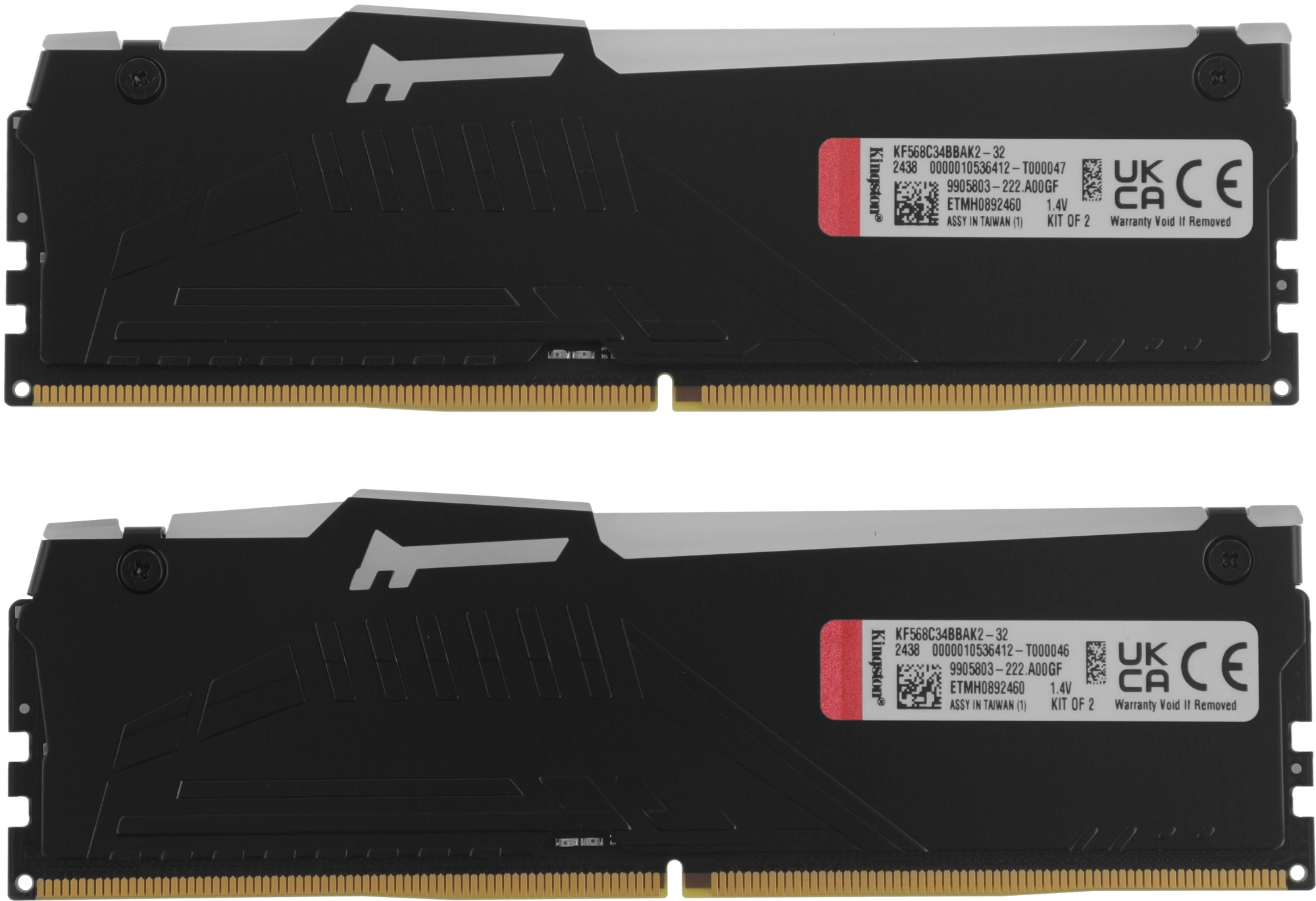 Память DDR5 2x16GB 6800MHz Kingston KF568C34BBAK2-32 Fury Beast RGB RTL Gaming PC5-54400 CL34 DIMM 288-pin 1.4В kit single rank с радиатором Ret