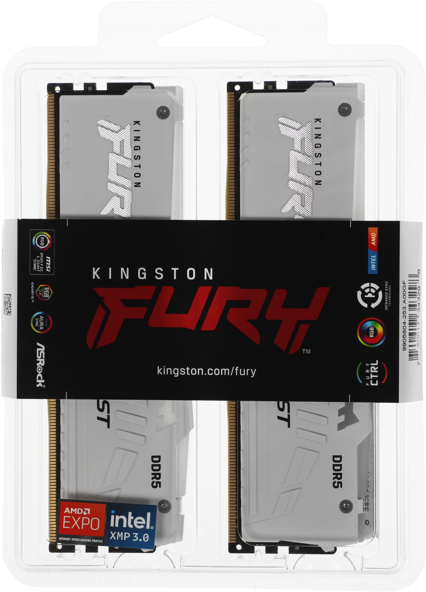 Память DDR5 2x32GB 6000MHz Kingston KF560C30BWEAK2-64 Fury Beast RGB RTL Gaming PC5-48000 CL30 DIMM 288-pin 1.4В kit single rank с радиатором Ret
