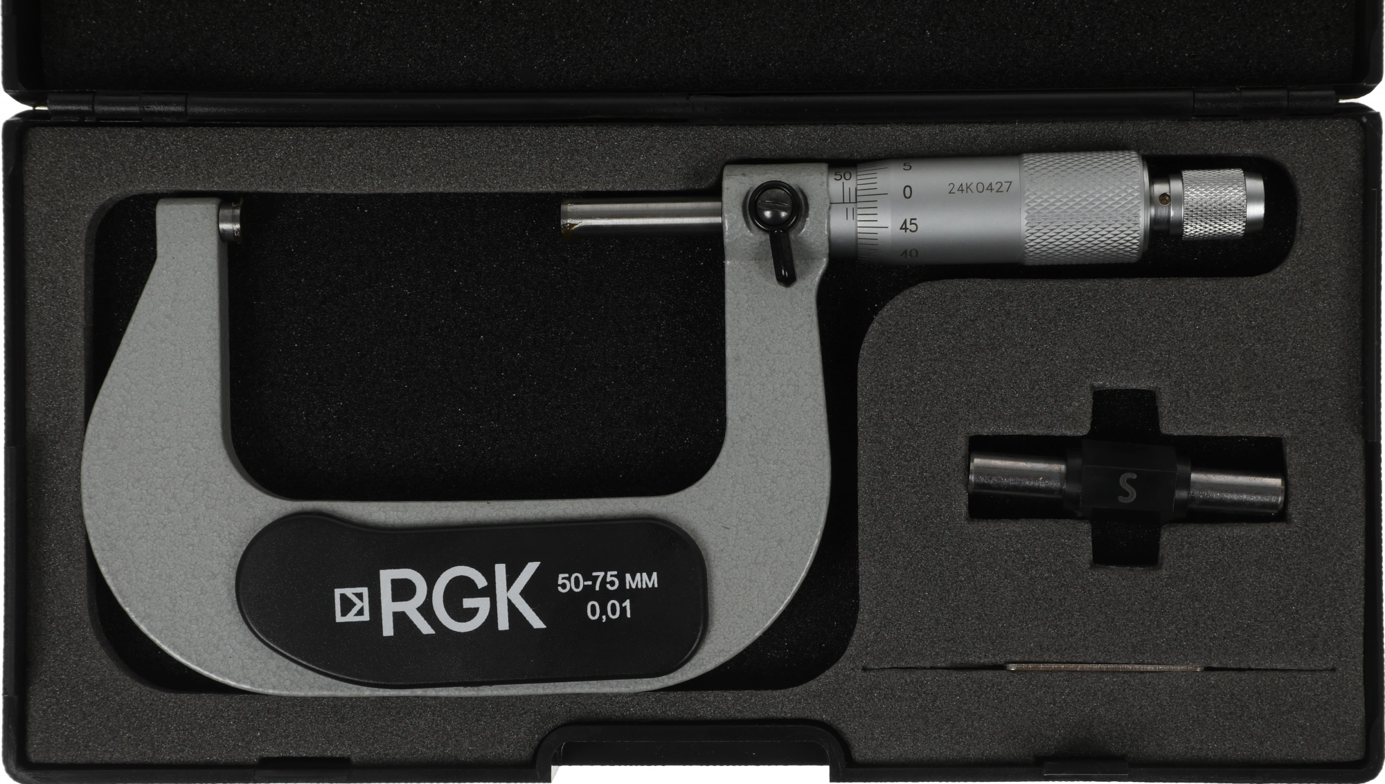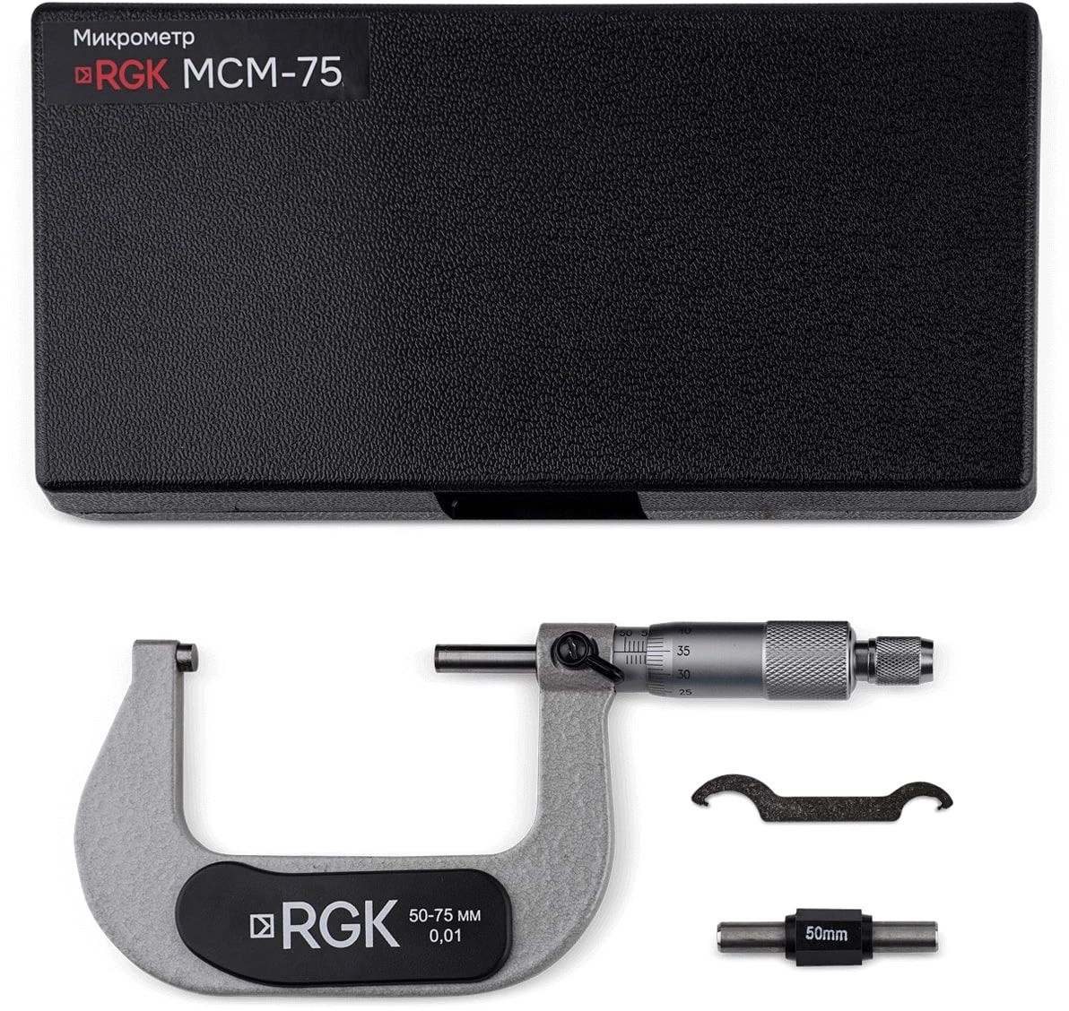 - Комплект поставкиМикрометр RGK MCM-75, футляр, ключ.