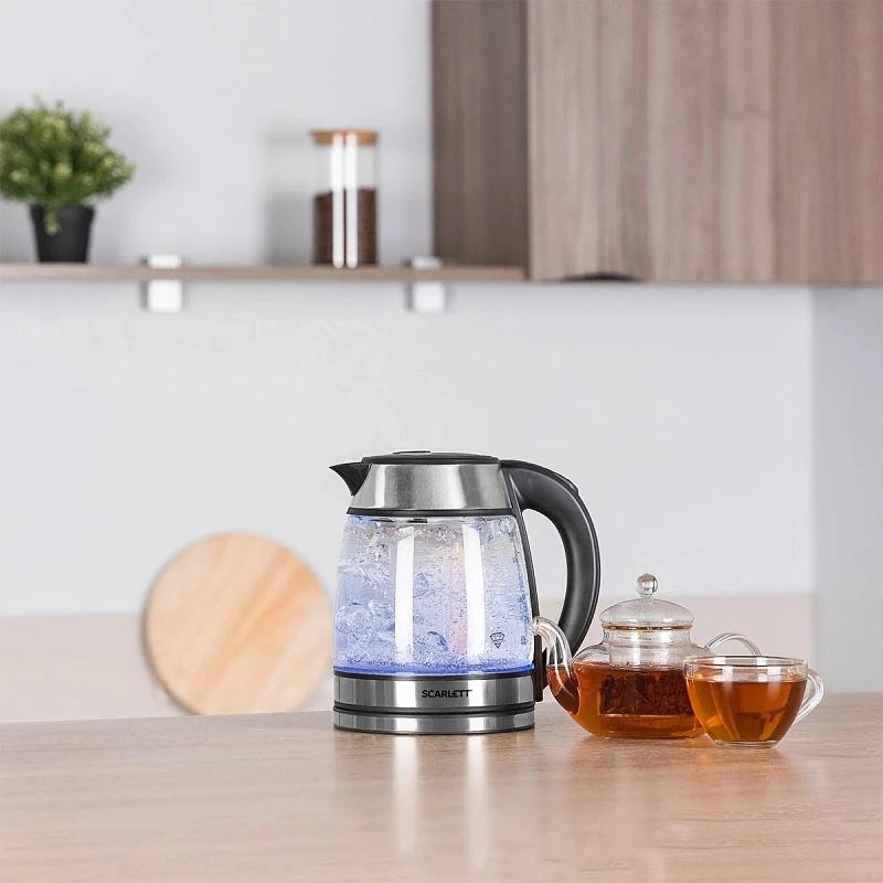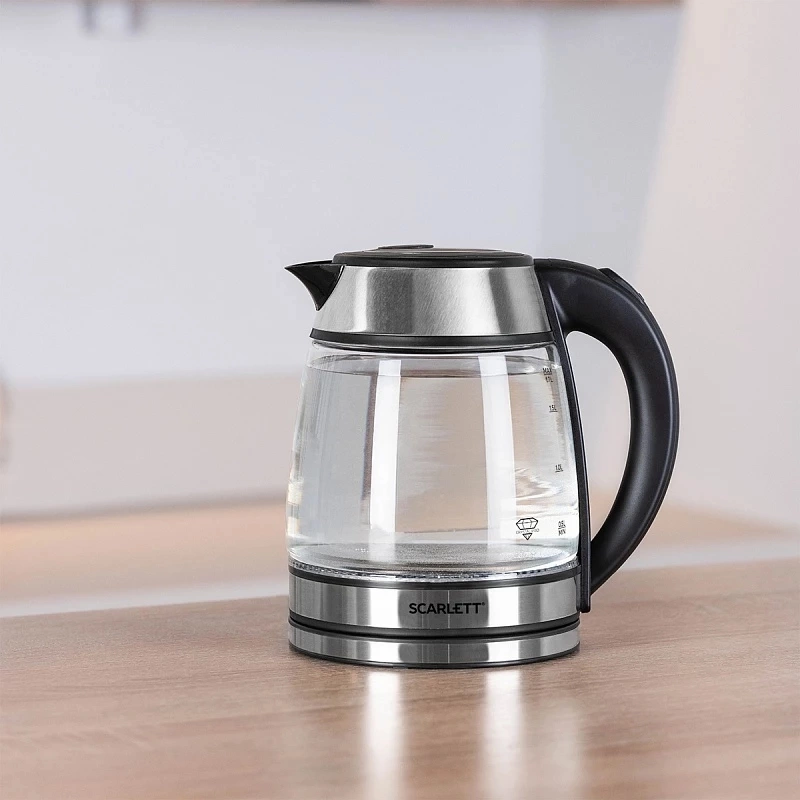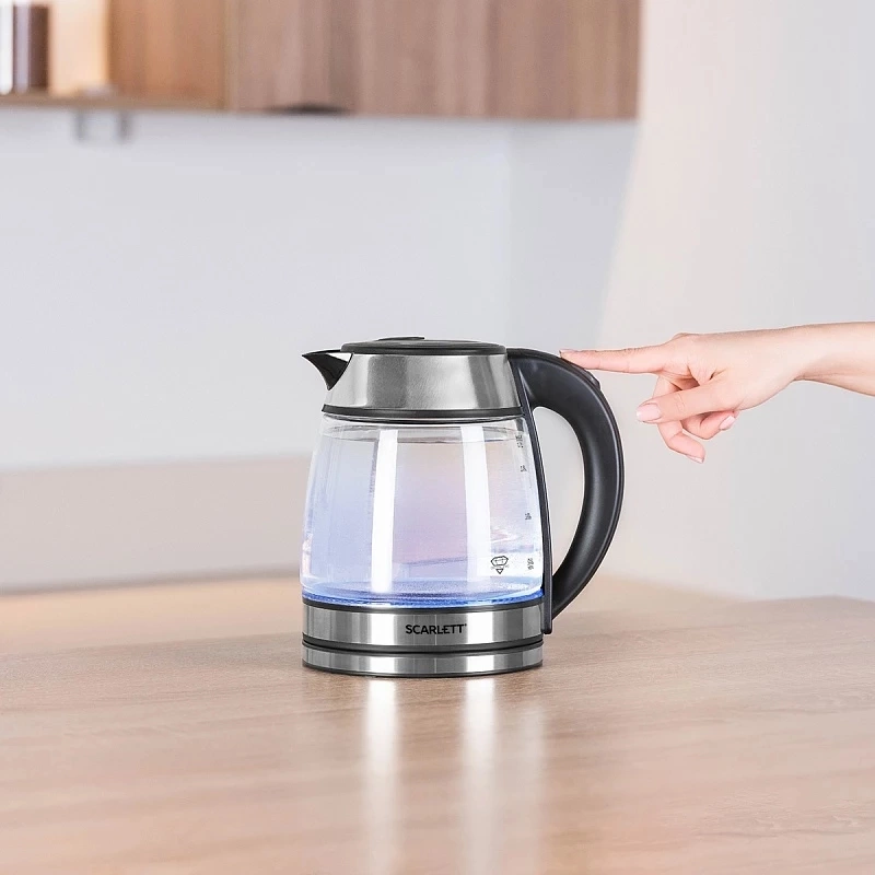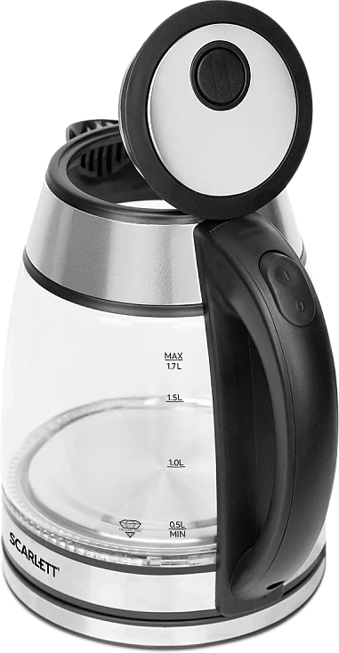 Чайник электрический Scarlett SC-EK27G54 1.7л. 1800Вт серебристый/черный корпус: нерж.сталь/стекло