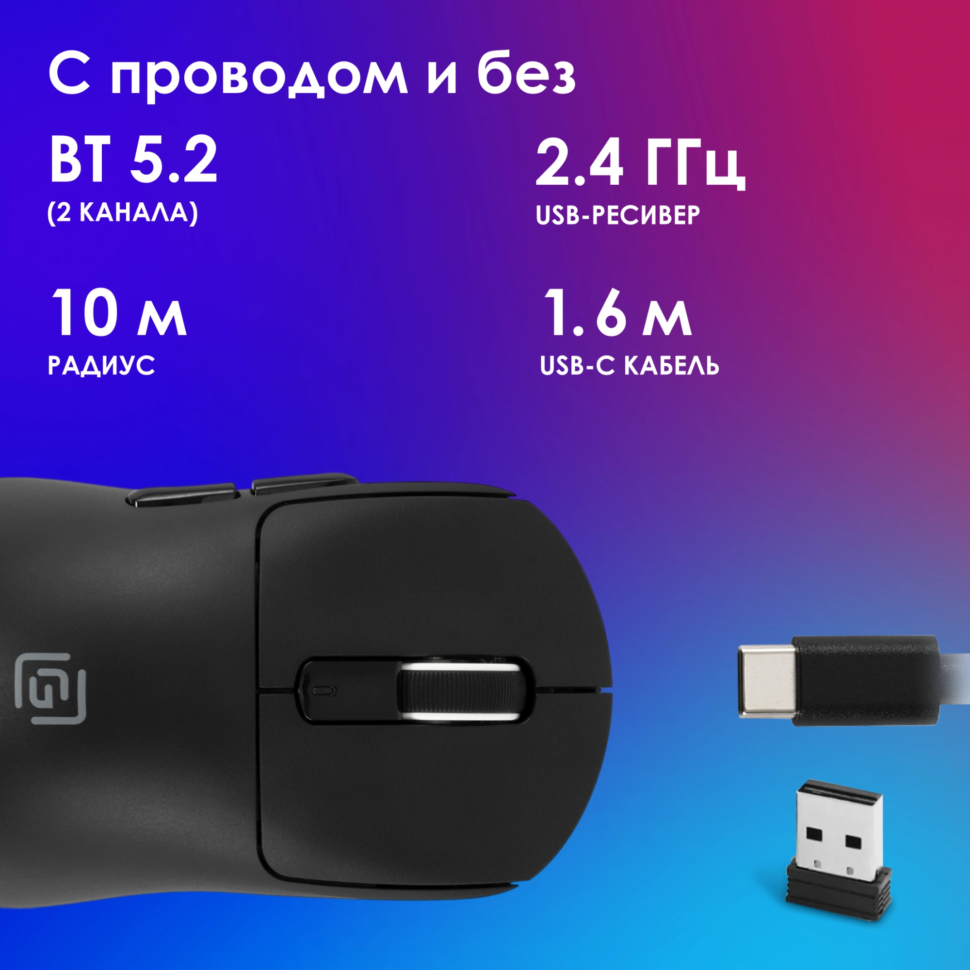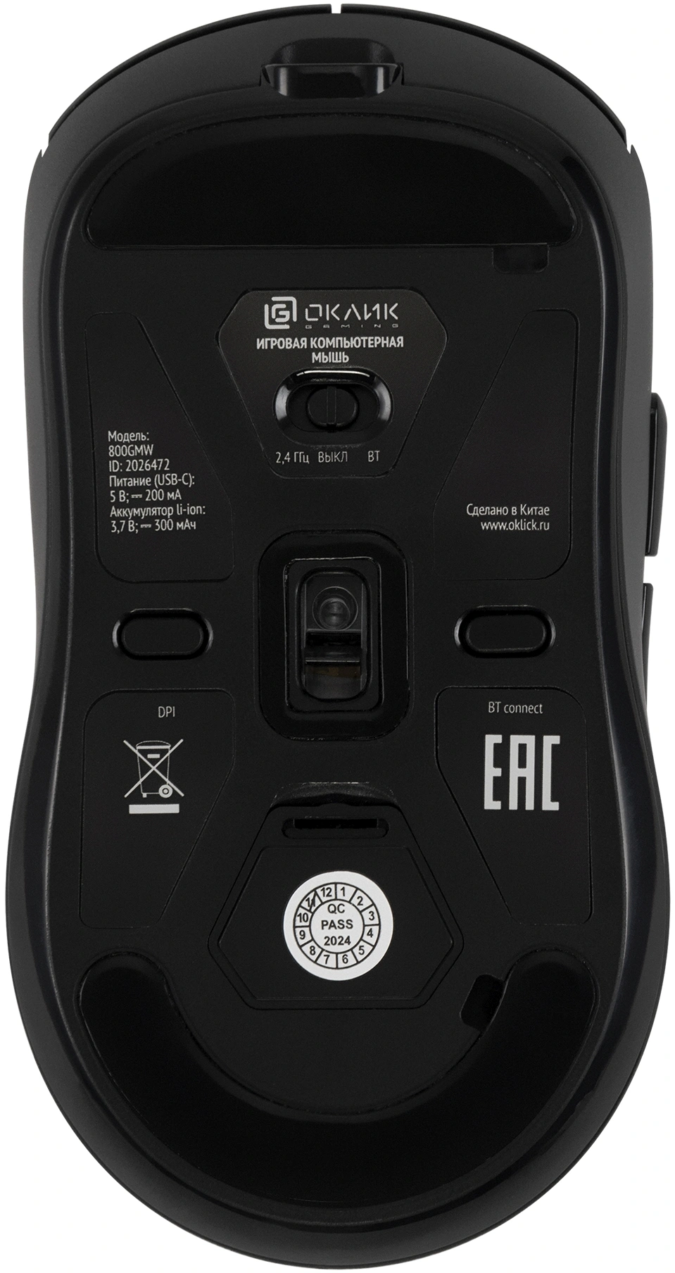 Мышь Оклик 800GMW черный/черный оптическая 10000dpi беспров. BT/Radio USB 6but