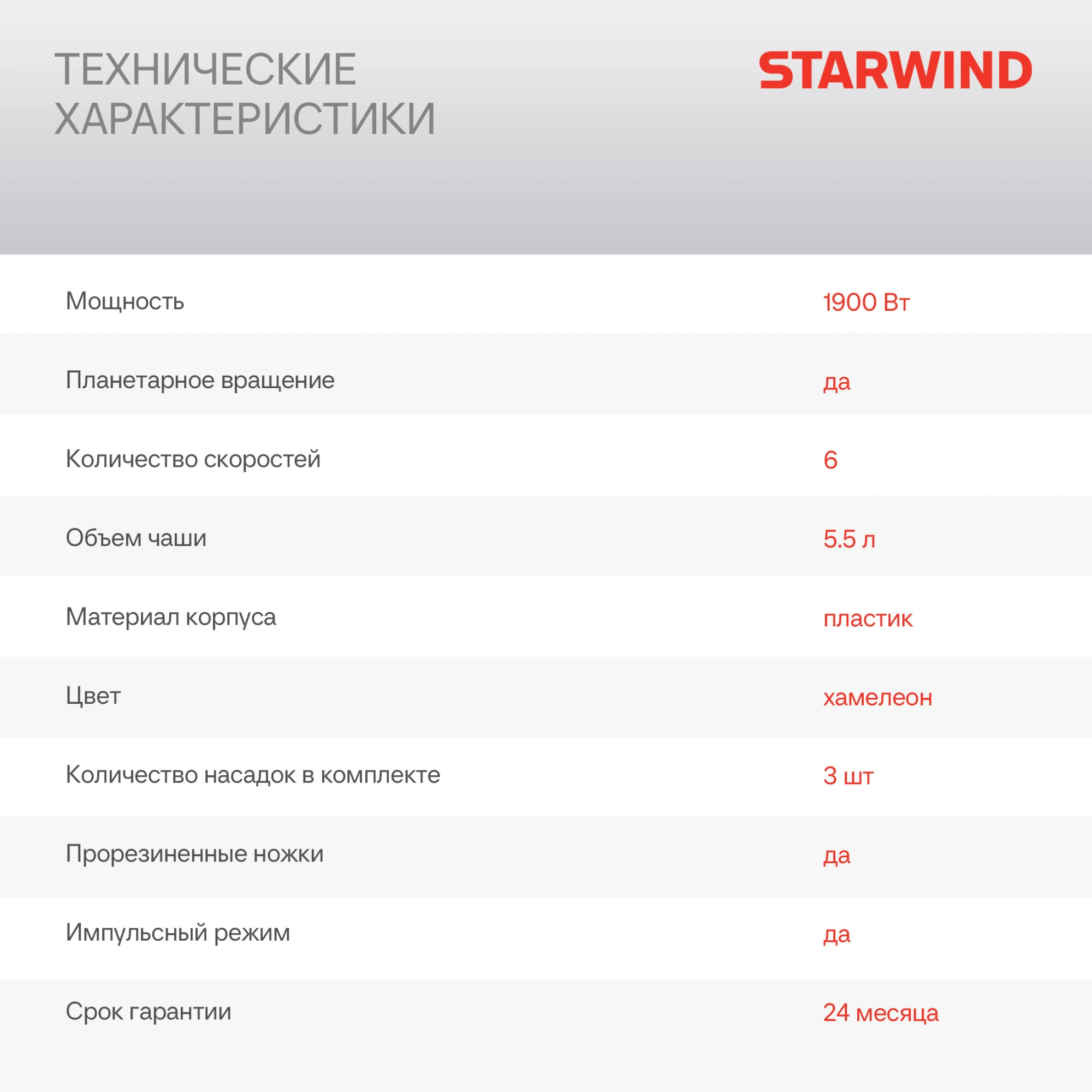 Миксер планетарный Starwind SPM7166 1900Вт хамелеон