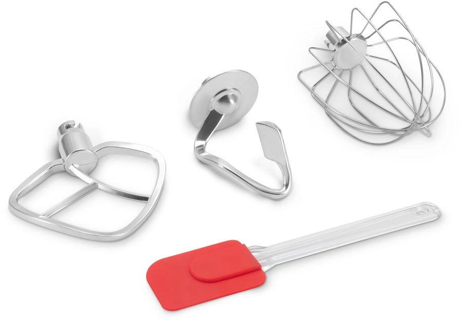 - КомплектацияМиксер; чаша; защитная крышка; насадка-венчик; насадка-лопатка; насадка-крюк; кулинарная силиконовая лопатка; инстуркция с гарантийным талоном; книга рецептов