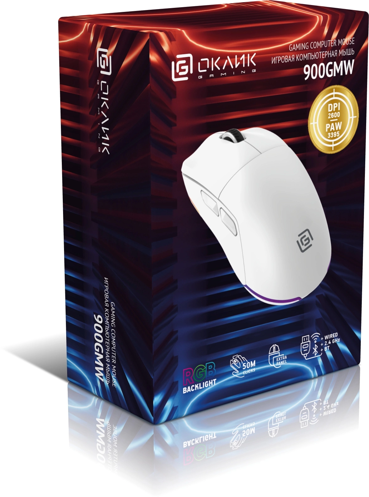 - ОсобенностиСенсор PixArt PAW3395. Три режима - 2,4G + BlueTooth + провод, 600 mAh, 50 млн кликов, RGB. ПО для дополнительной настройки.