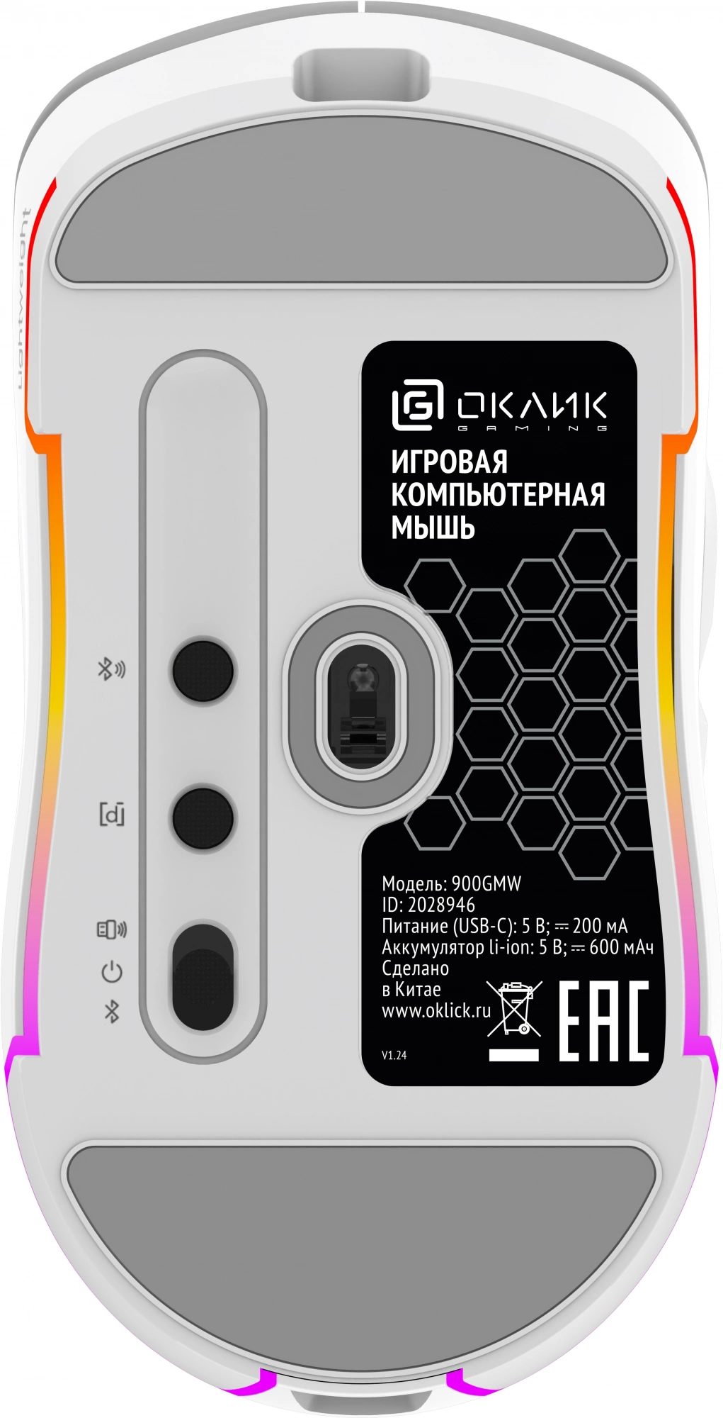 Мышь Оклик 900GMW белый оптическая 26000dpi беспров. BT/Radio USB для ноутбука