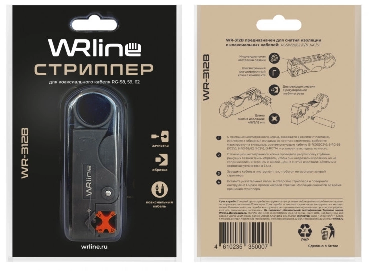 Инструмент обжимной WRline WR-312B для RJ-58/RG-59/RG-62