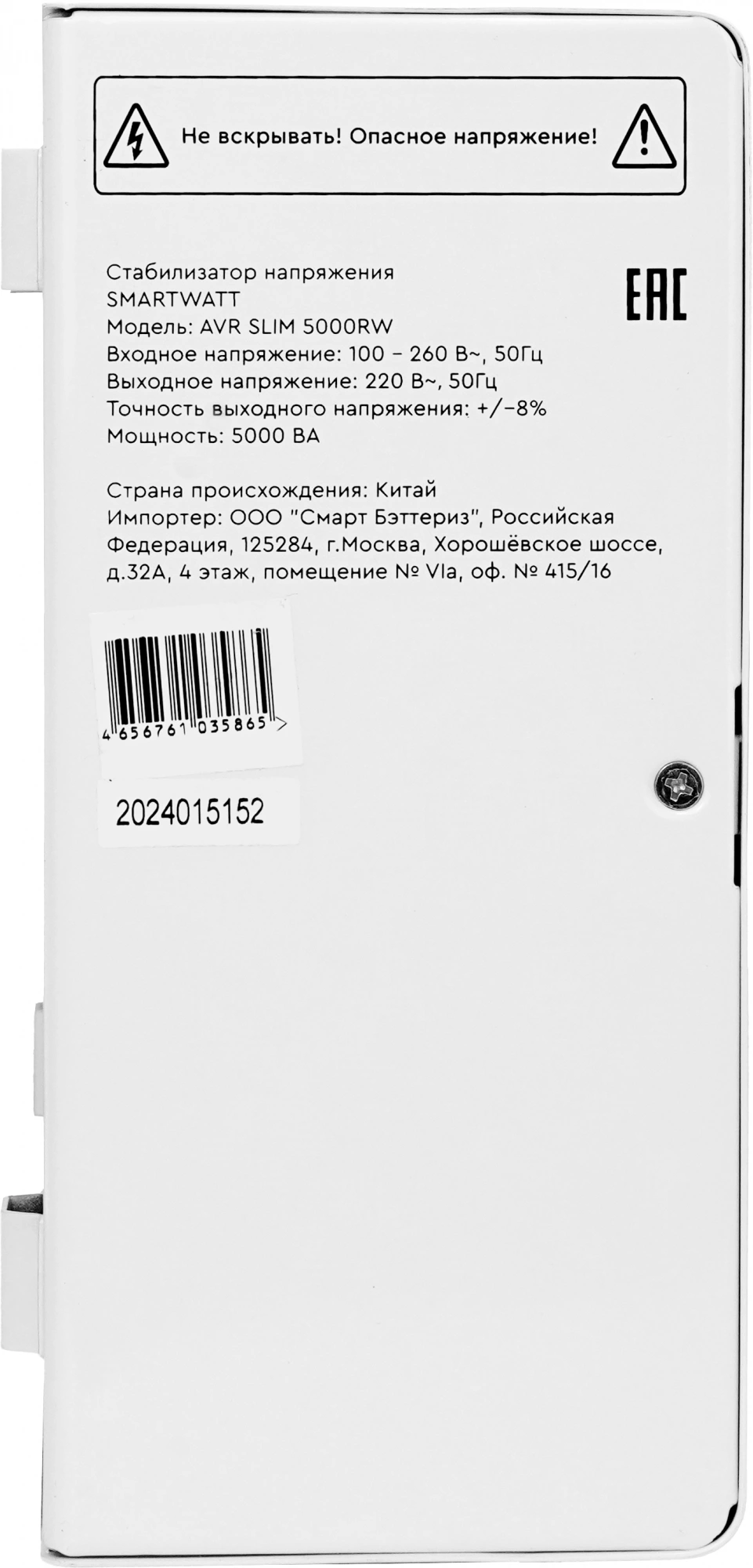 Стабилизатор напряжения Smartwatt AVR Slim 5000RW 5000ВА белый
