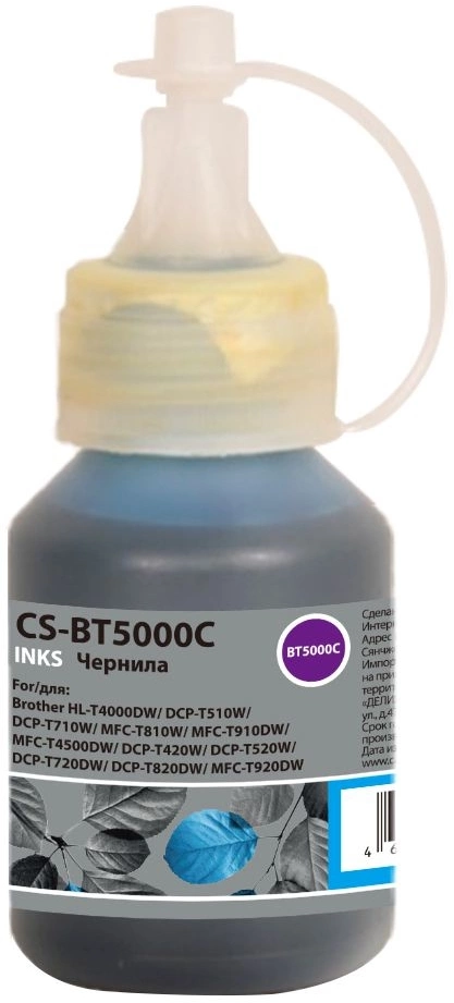Чернила Cactus CS-BT5000C голубой 48мл для Brother HL-T4000DW, DCP-T510W, DCP-T710W, MFC-T810W, MFC-T910DW, MFC-T4500DW, DCP-T420W, DCP-T520W, DCP-T720DW, DCP-T820DW, MFC-T920DW