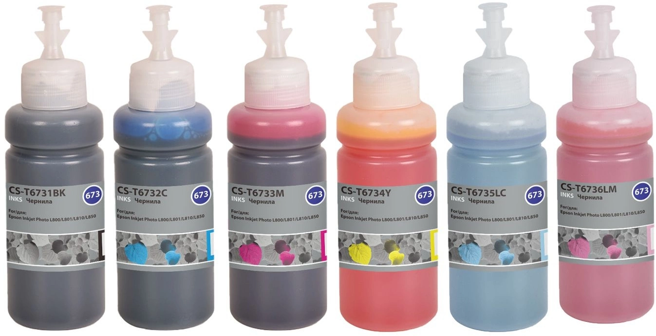 Чернила Cactus CS-T673set 673 черный/голубой/пурпурный/желтый/светло-голубой/светло-пурпурный набор 6x70мл для Epson Inkjet Photo L800/L801/L810/L850
