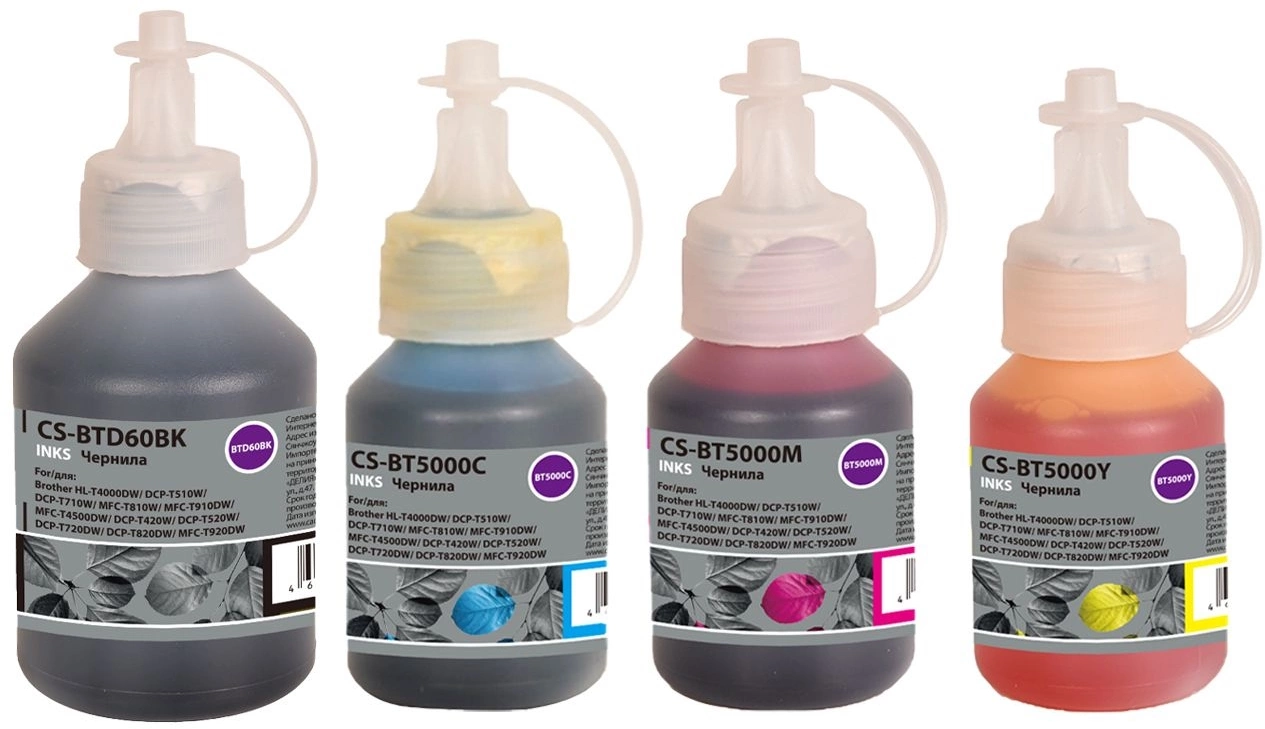 Чернила Cactus CS-BTD60/BT5000SET голубой/пурпурный/желтый/черный набор для Brother HL-T4000DW, DCP-T510W, DCP-T710W, MFC-T810W, MFC-T910DW, MFC-T4500DW, DCP-T420W, DCP-T520W, DCP-T720DW, DCP-T820DW, MFC-T920DW