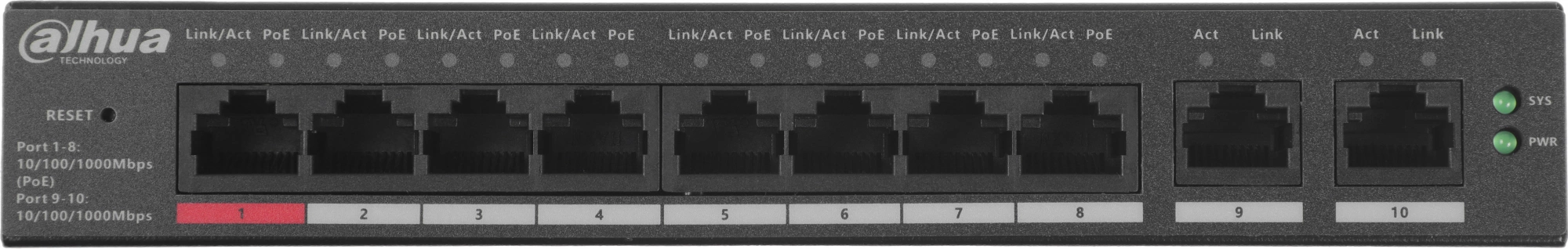 Коммутатор Dahua DH-CS4010-8GT-110 (L2) 10x100Мбит/с 8PoE 110W управляемый