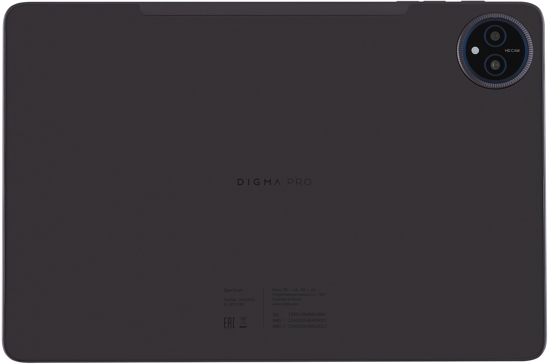 Планшет Digma Pro Spectrum T606 (1.6) 8C RAM6Gb ROM128Gb 10.1" IPS 1280x800 4G Android 14 темно-серый 13Mpix 5Mpix BT WiFi microSD 512Gb 6000mAh 255hrs