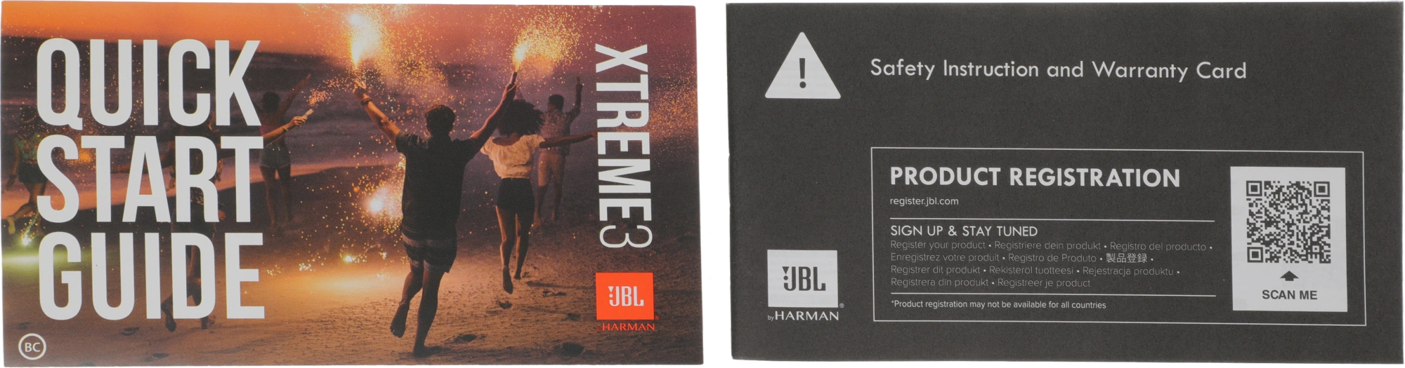 - КомплектацияПортативная колонка JBL Xtreme 3. Краткое руководство пользователя. Адаптер JBL с силовым кабелем + вилка, соответствующая региональному стандарту. Ремень JBL Xtreme 3. Гарантийный талон. Паспорт безопасности.