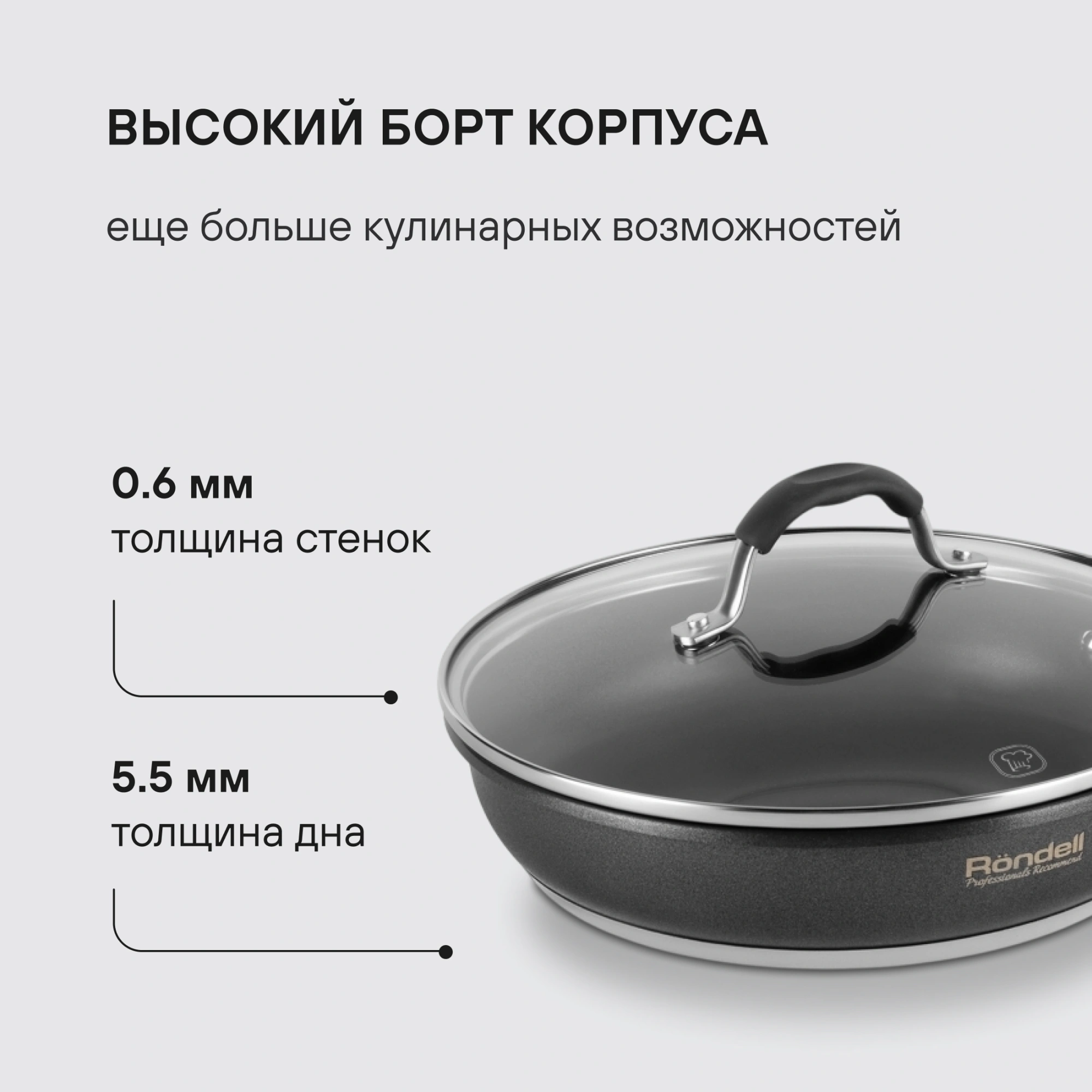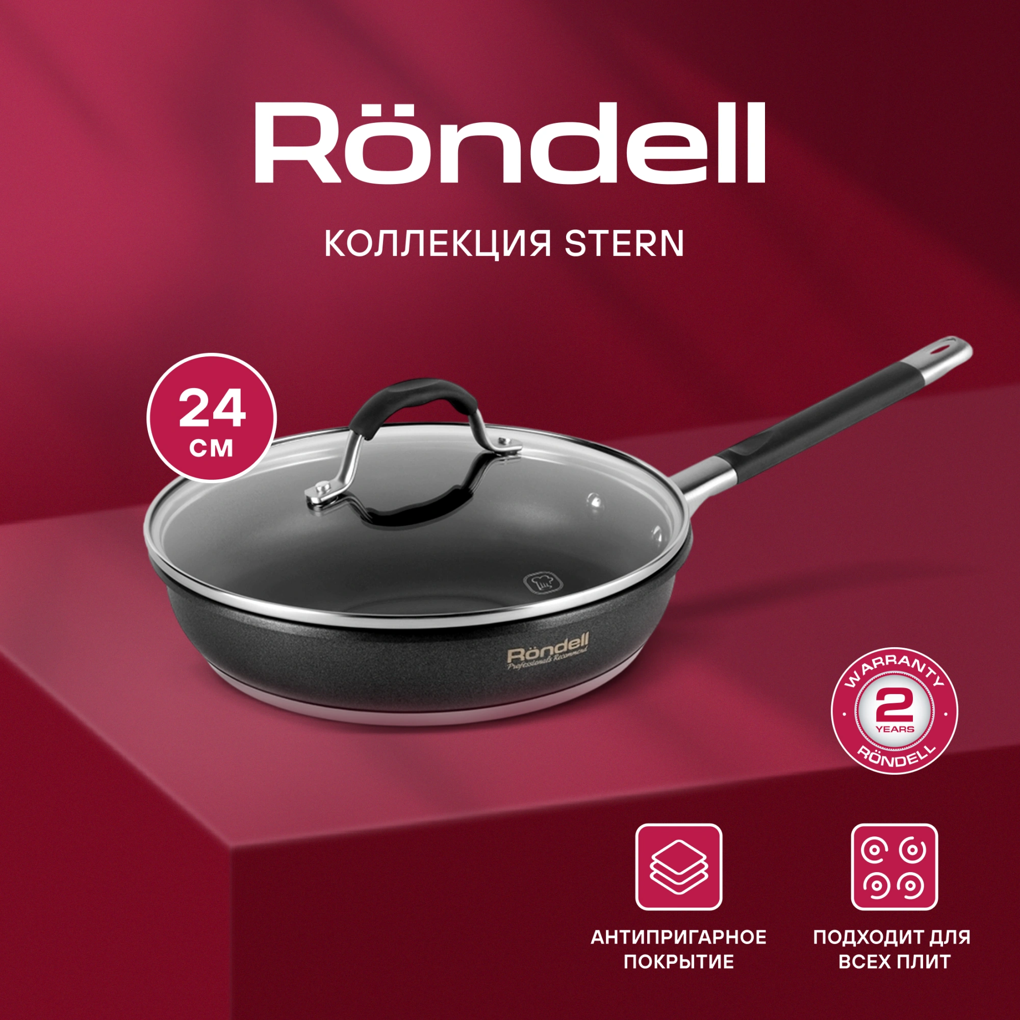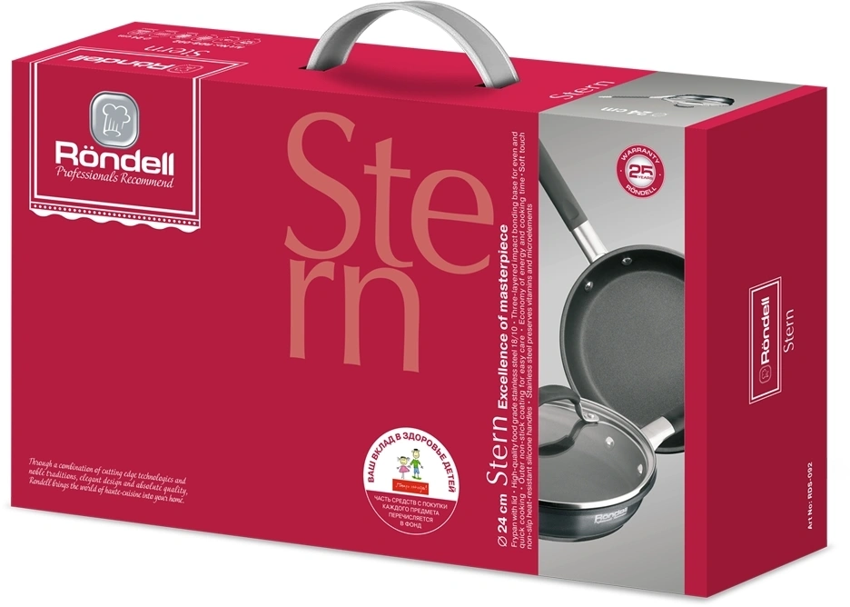 Сковорода Rondell Stern RDS-092 круглая 24см покрытие: Excalibur ручка несъемная (с крышкой) серый