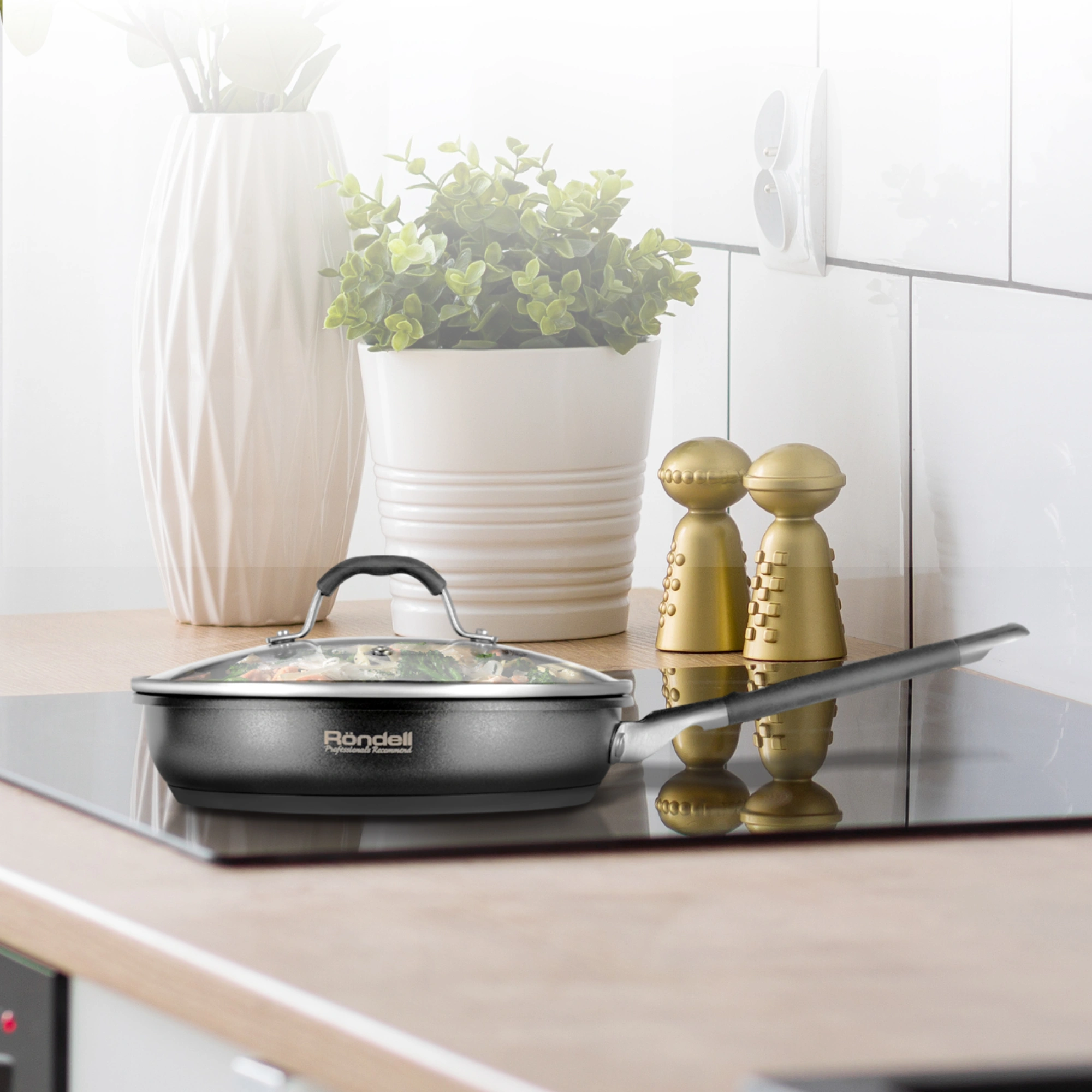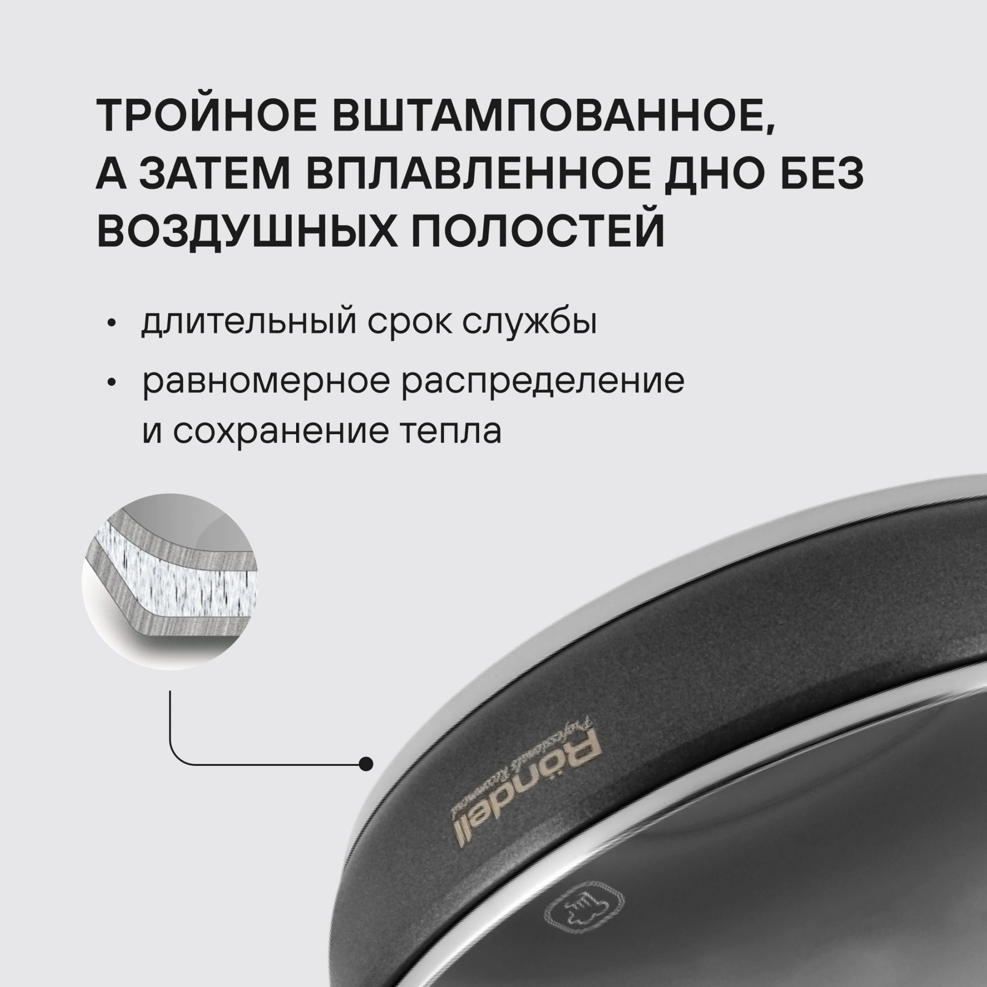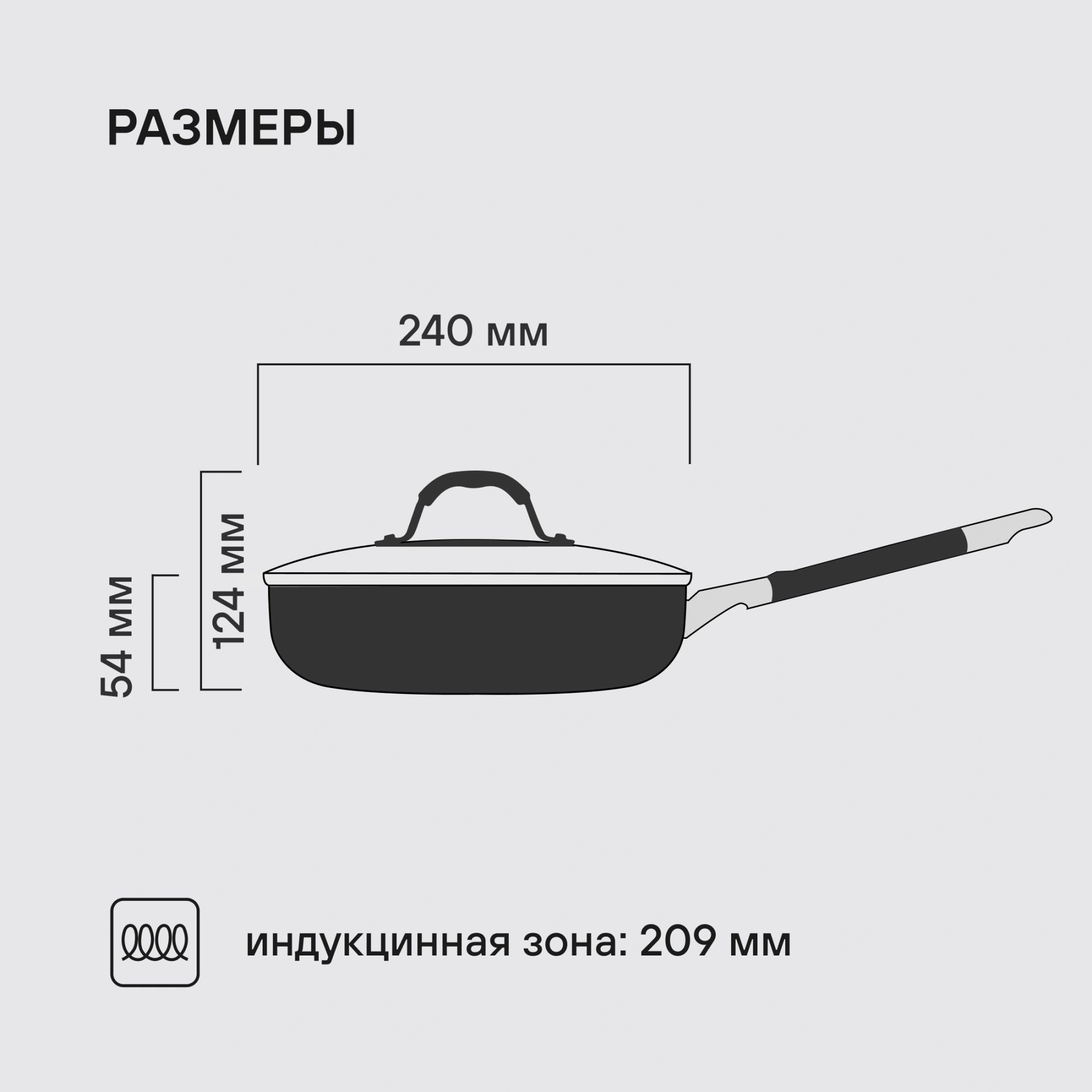 Сковорода Rondell Stern RDS-092 круглая 24см покрытие: Excalibur ручка несъемная (с крышкой) серый