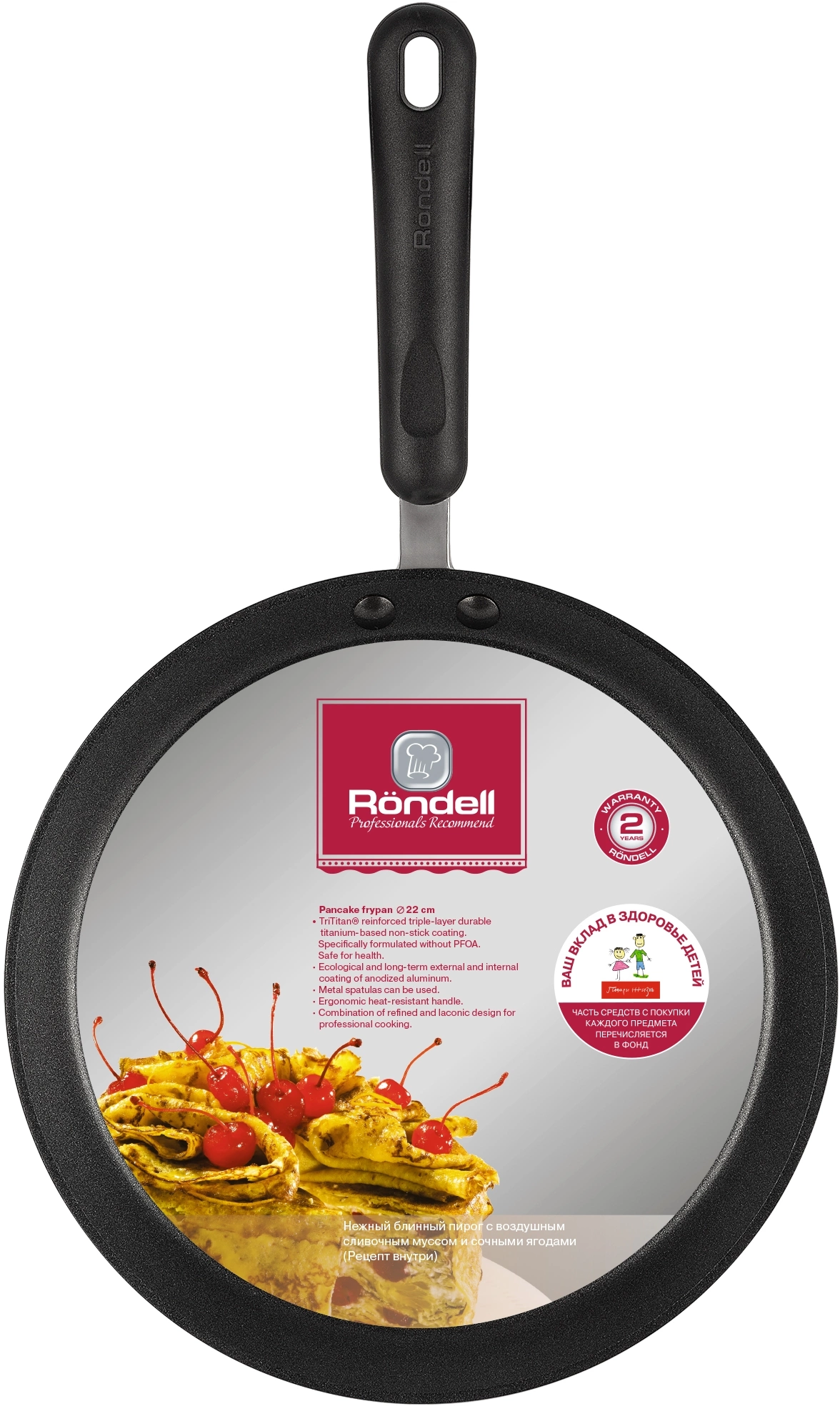 Сковорода блинная Rondell Pancake frypan RDA-274 круглая 22см покрытие: TriTitan ручка несъемная (без крышки) черный