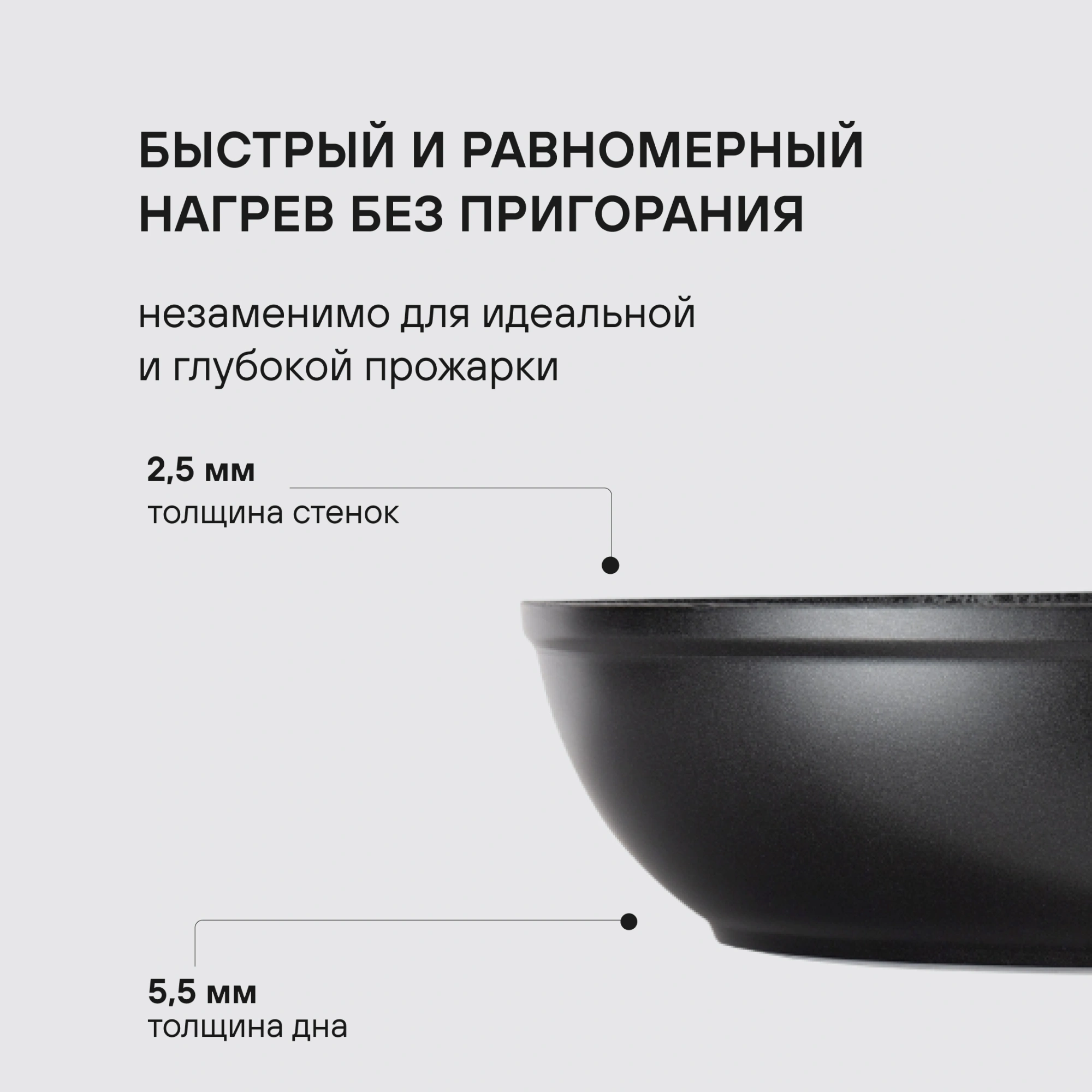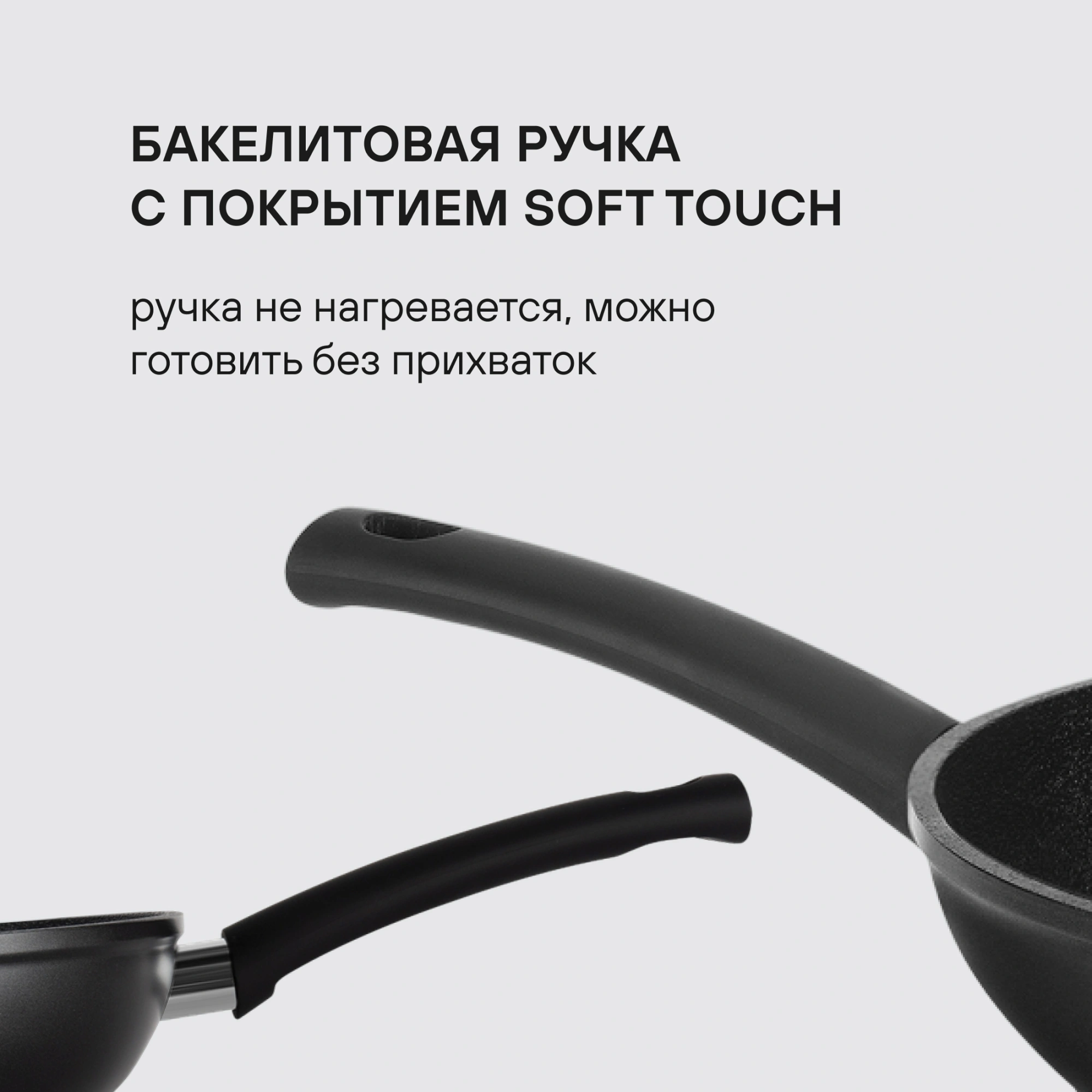 - ОсобенностиТехнология: специальная фактурная обработка внутренней поверхности. Аксессуары: из бакелита с покрытием Soft Touch. Преимущества: рельефная поверхность дна; Равномерное распределение температуры в процессе приготовления блюд; Классическая форма; Высокие стенки корпуса – большой литраж посуды