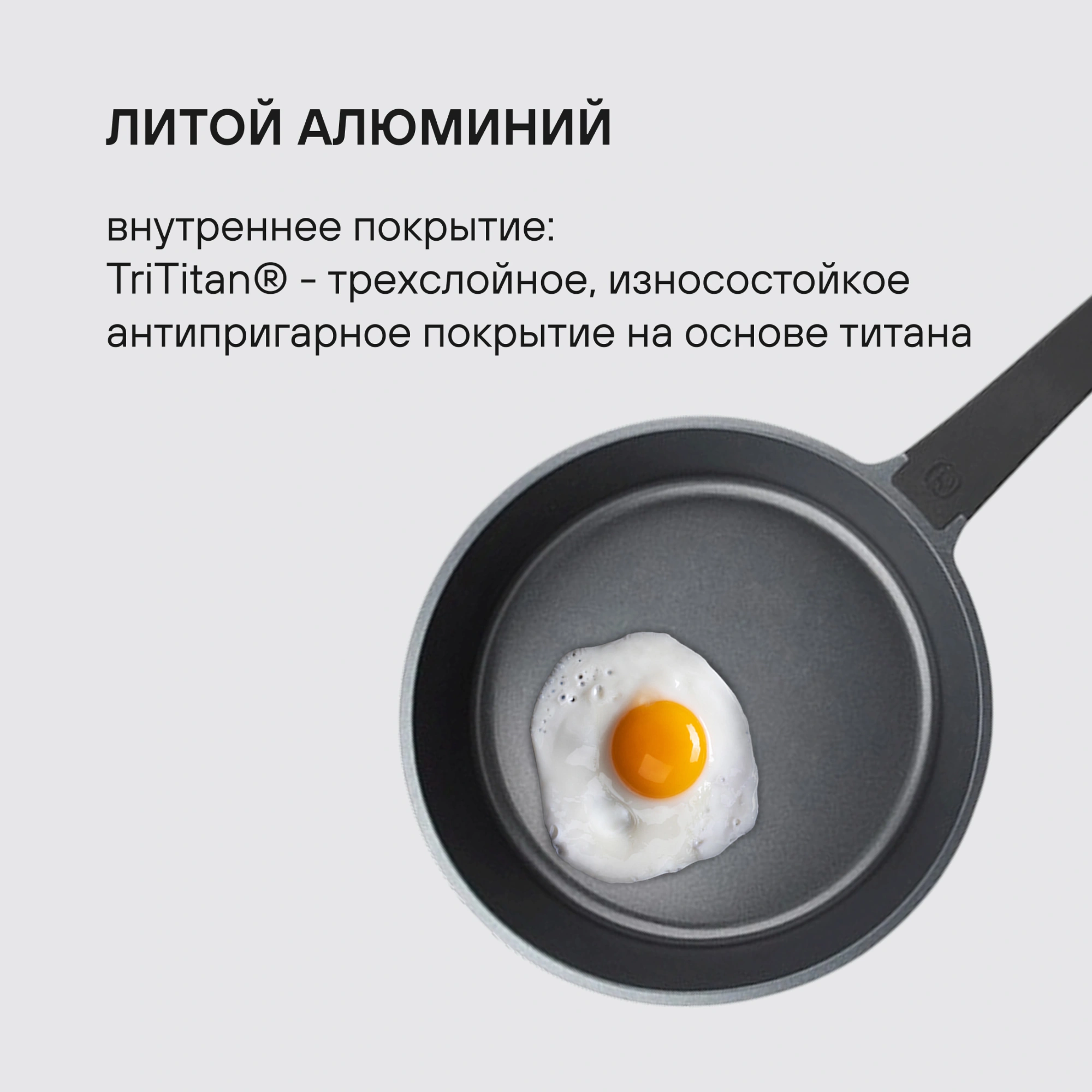 - ОсобенностиАксессуары: из бакелита с покрытием Soft Touch. Преимущества: удобный хват; возможно использование металлических лопаток; TriTitan® - внутреннее трехслойное, износостойкое антипригарное покрытие на основе титана. Упаковка: подарочная упаковка с отверстиями для аксессуаров.