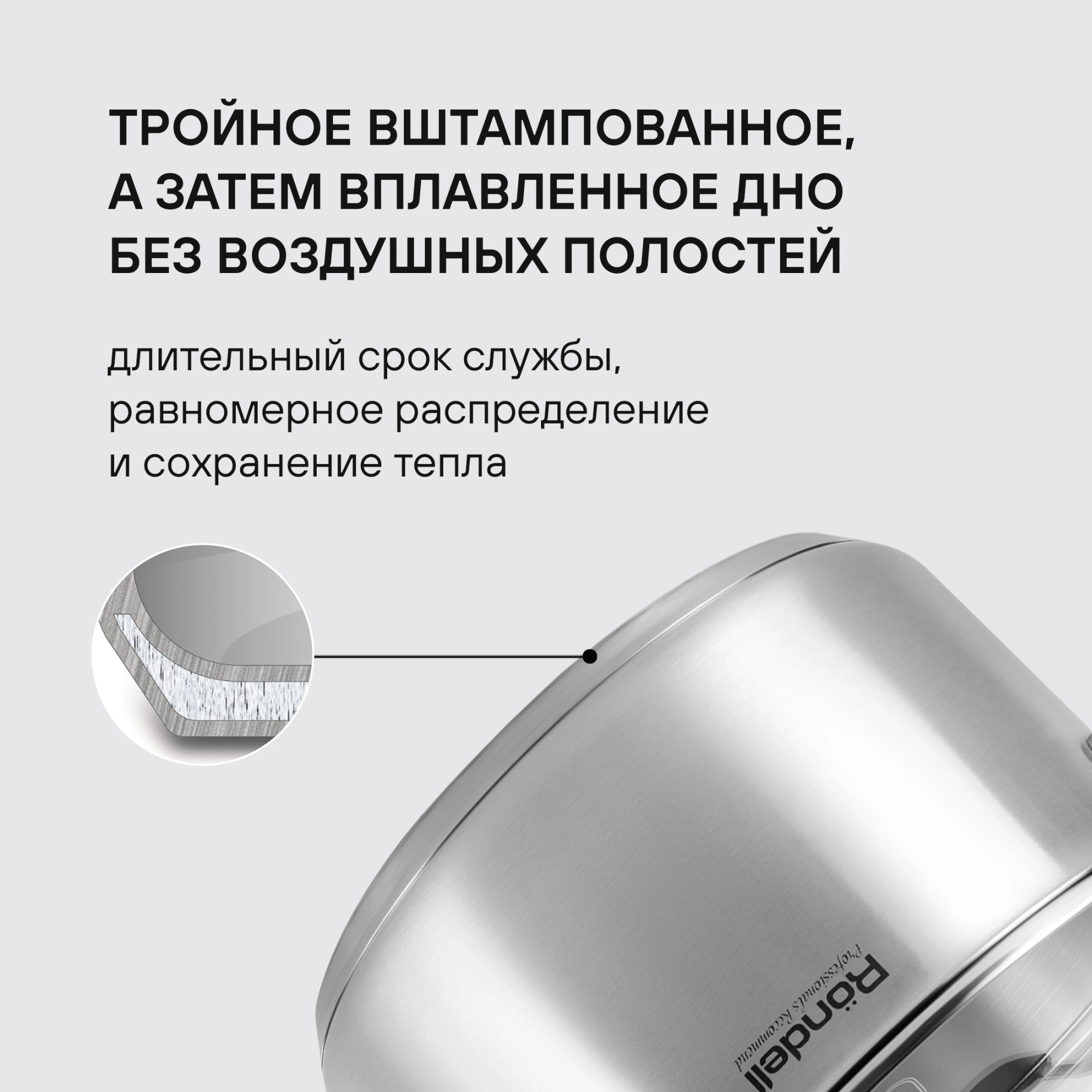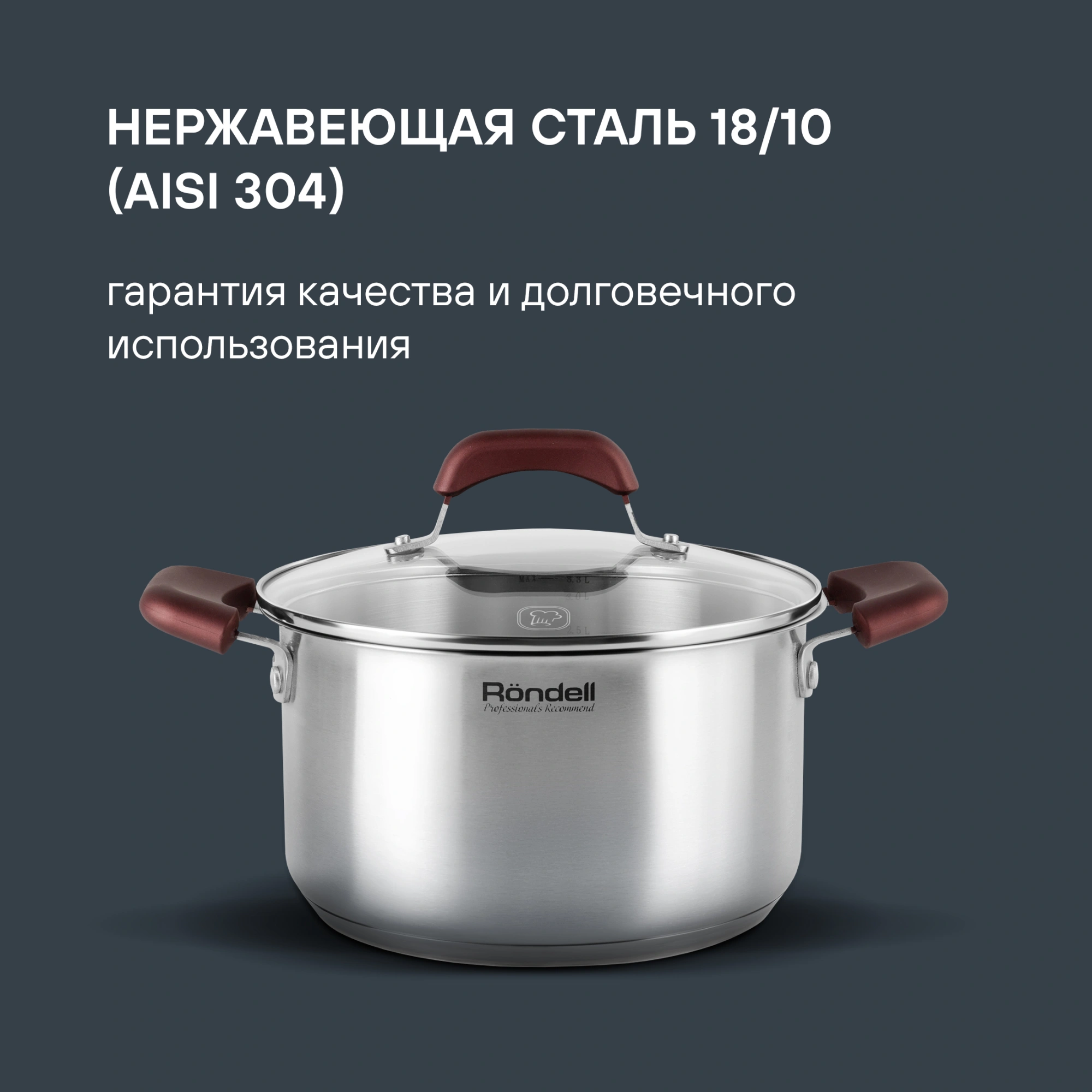 - ОсобенностиМатериал: высококачественная нержавеющая сталь 18/10. Внутреннее покрытие: без покрытия. Толщина стенок: 0,5 мм. Толщина дна: 5,0 мм. Материал крышки: термостойкое стекло. Аксессуары: из бакелита, с покрытием Soft Touch. Преимущества: высокие стенки корпуса – большой литраж посуды.