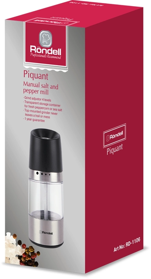 Мельница для перца/соли Rondell Piquant RD-1106 стальной/черный упак.:подарочная коробка