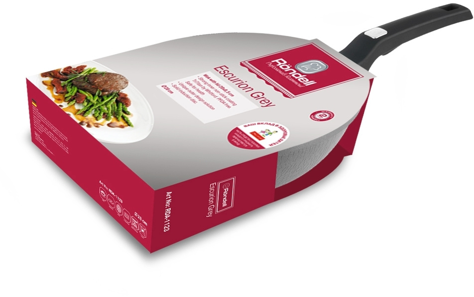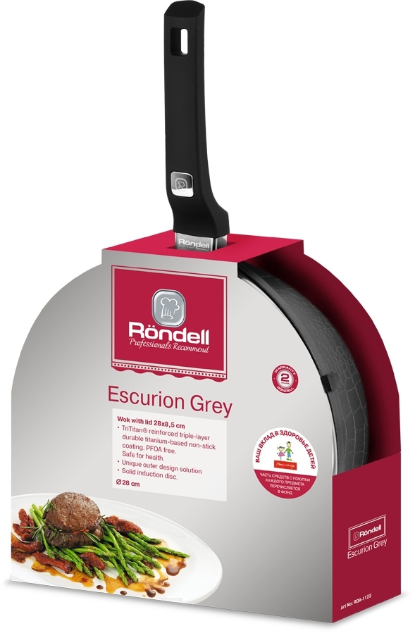 Сковорода ВОК (WOK) Rondell Escurion Grey RDA-1123 круглая 28см покрытие: TriTitan ручка несъемная (с крышкой) серый