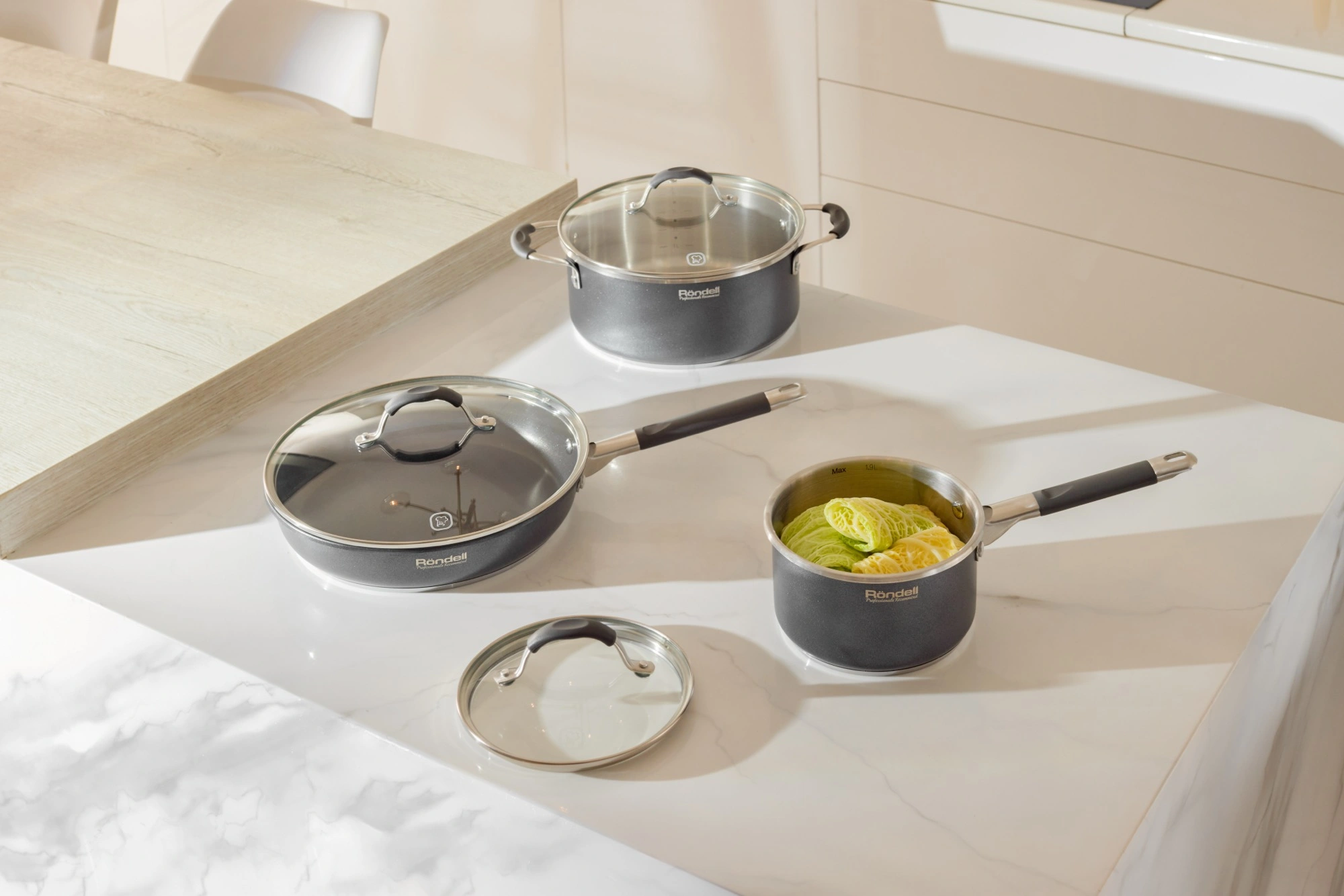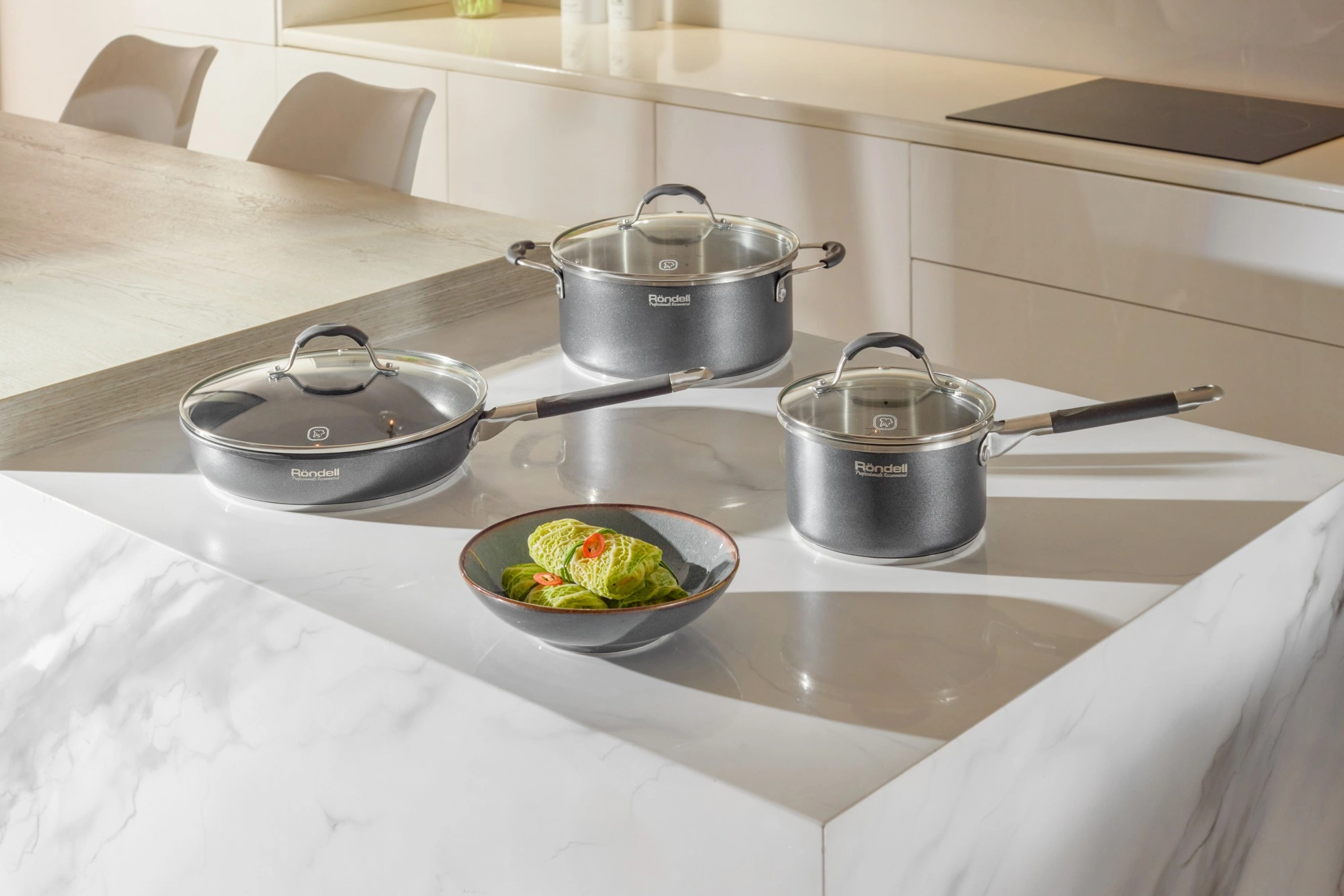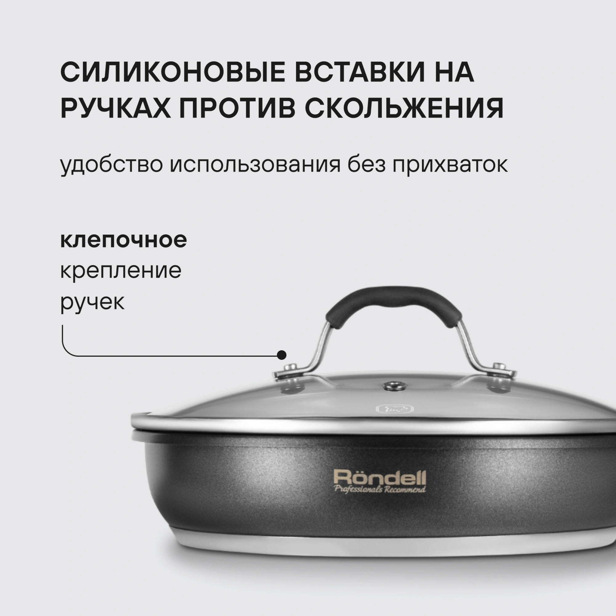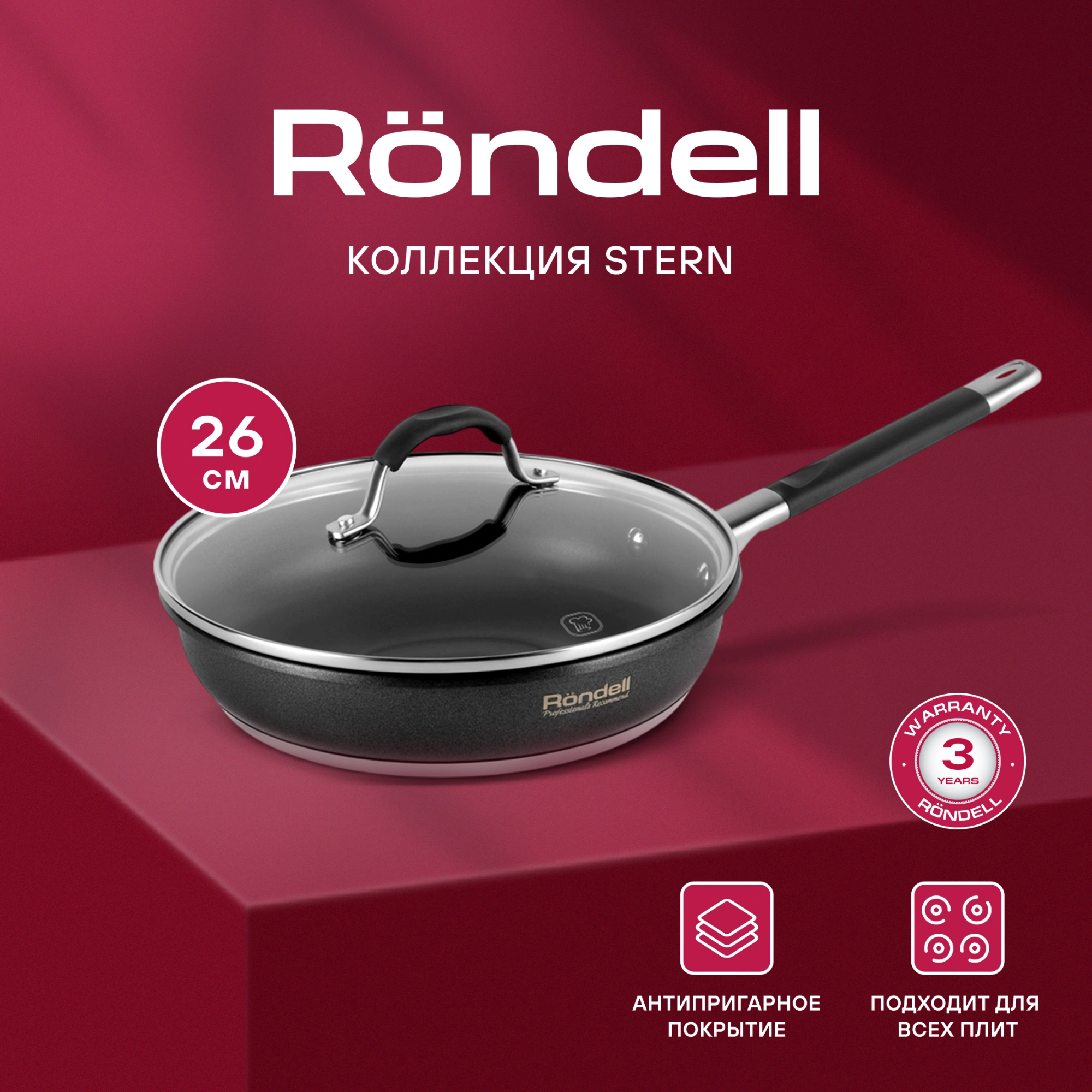 Сковорода Rondell Stern RDS-1264 круглая 26см покрытие: Excalibur ручка несъемная (с крышкой) серый